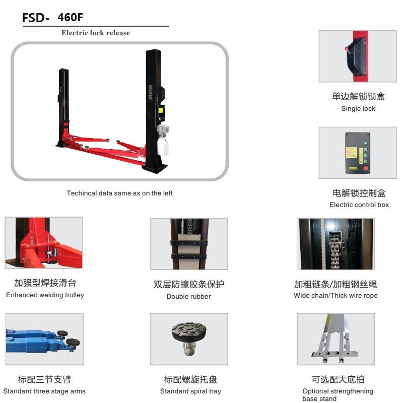 5500KG Fujita Eagle FSD-460F Series Two Pillar Lift Standard configuration: