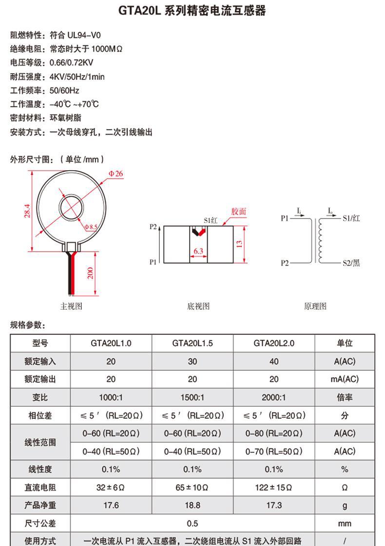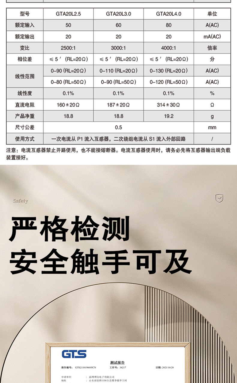 Трансформатор тока Bosin GTA20L, внутренний диаметр 8 мм, сквозной тип, 0-130А, переменный ток, прецизионный, миниатюрный, высокоточный
