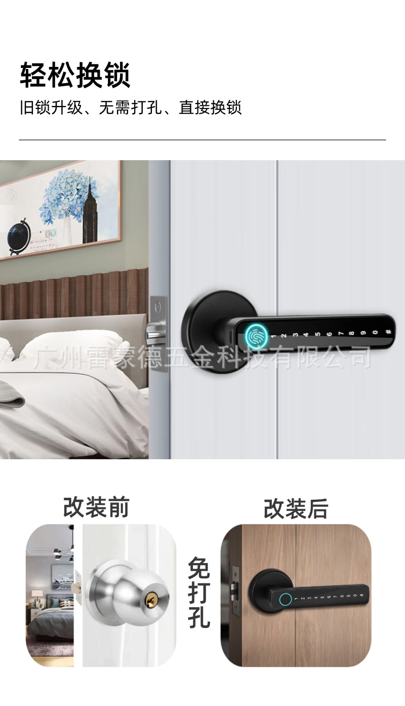Сферическая деревянная дверь отпечатков пальцев замок в помещении умный трехстержнековый замок bluetooth пароль граффити APP электронный замок умный дверной замок