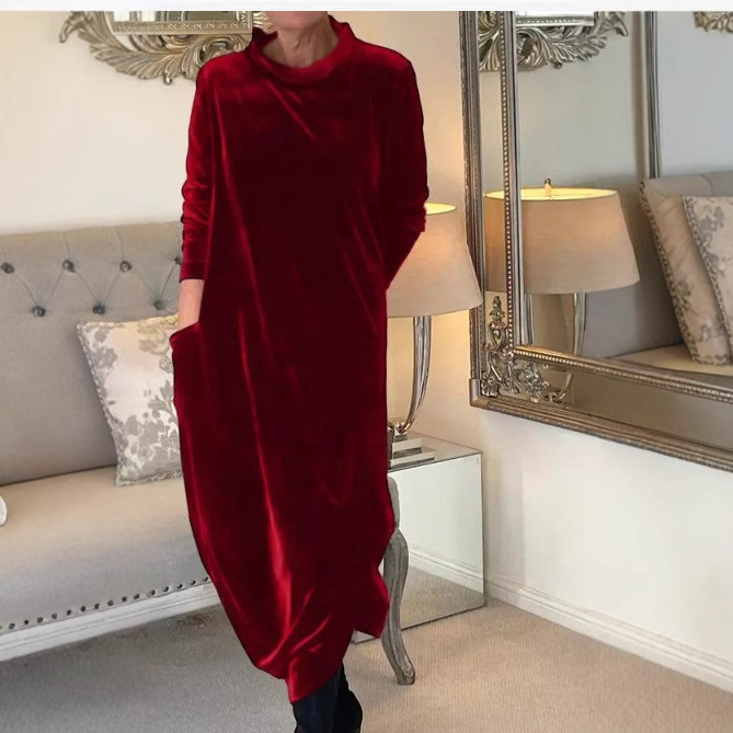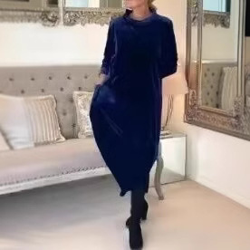 Трансграничный 2024 Amazon весна новый европейский и американский тонкий темперамент длинное платье с круглым вырезом