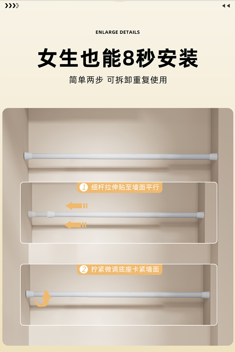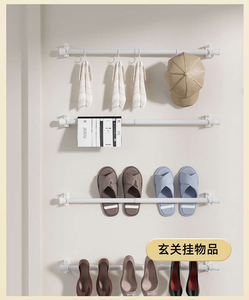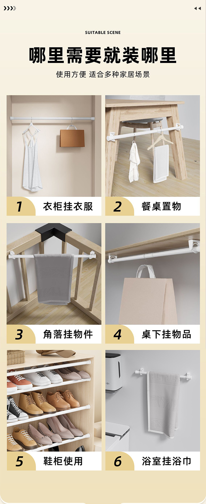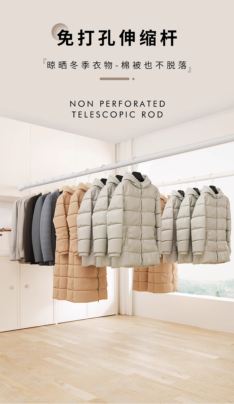 Телескопическая планка без перфорации, установка вешалки для одежды, чтобы заблокировать дверной штанг, шкаф, опорный стержень, регулирующий усадочную тонкую штангу