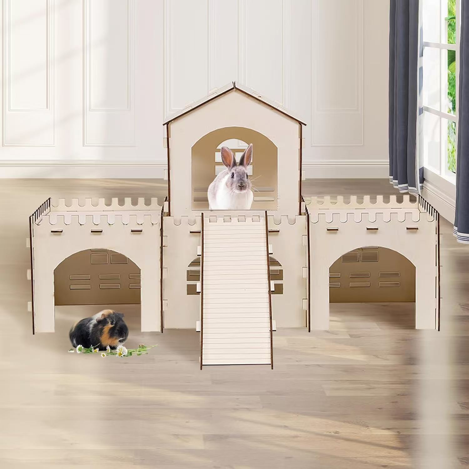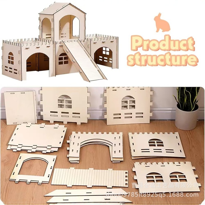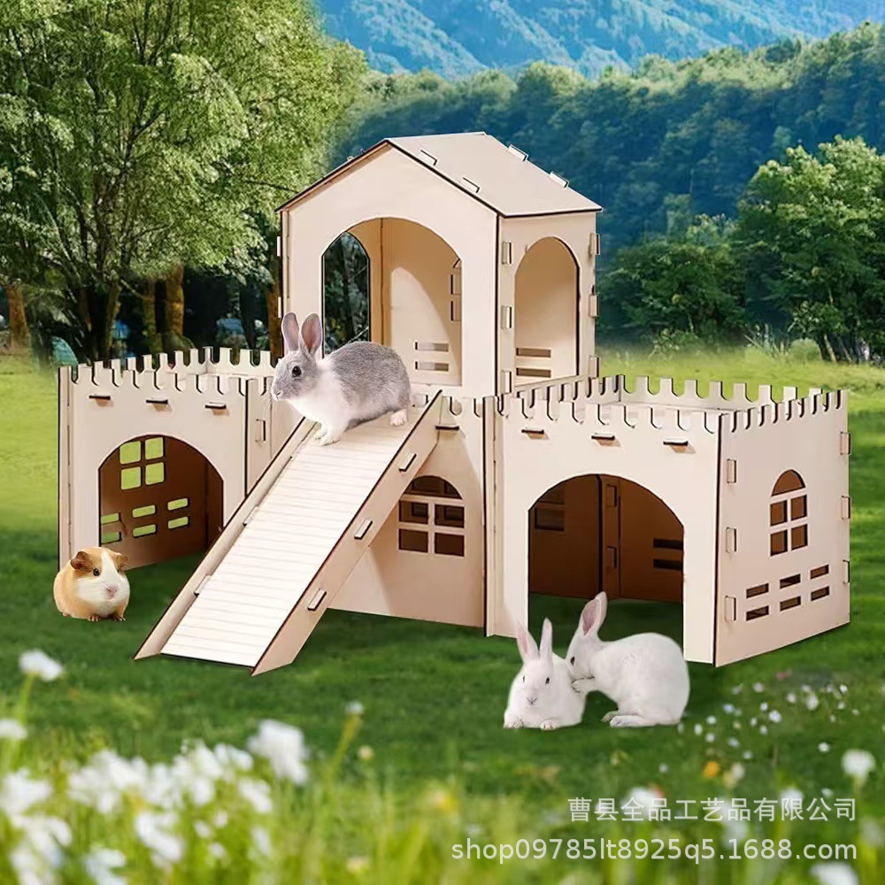 Деревянное кроличье гнездо, замок для кроликов, креативная вилла для кроликов, укрытие, игровой деревянный дом, спальное гнездо для домашнего хомяка