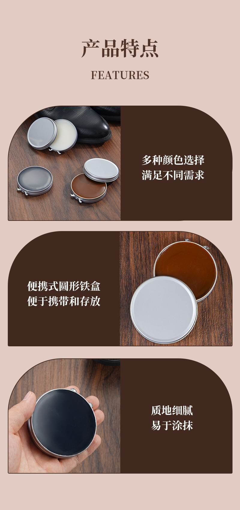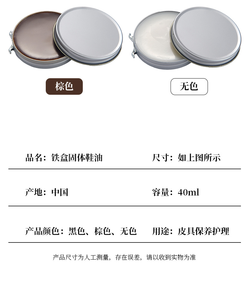 Черный, бесцветный, коричневый крем для обуви из кожи в жестяной банке, полировка, окрашивание, уход, увлажнение, 40 мл, быстросохнущий