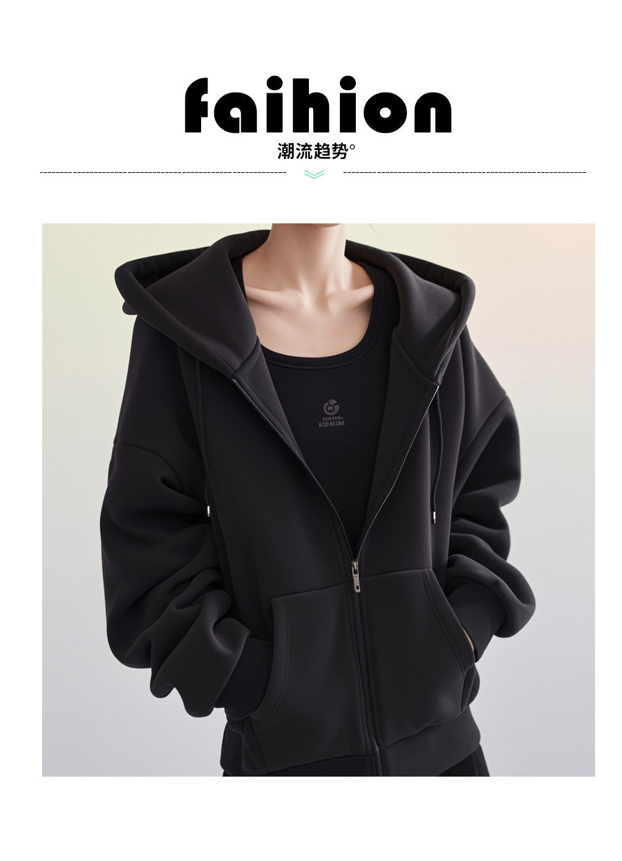 Тяжелый бархатный толстый кардиган с капюшоном свитер для мужчин и женщин тот же осенний и зимний новый сплошной цвет куртка на молнии