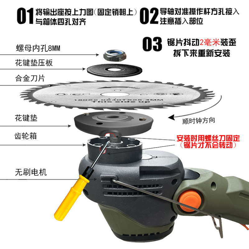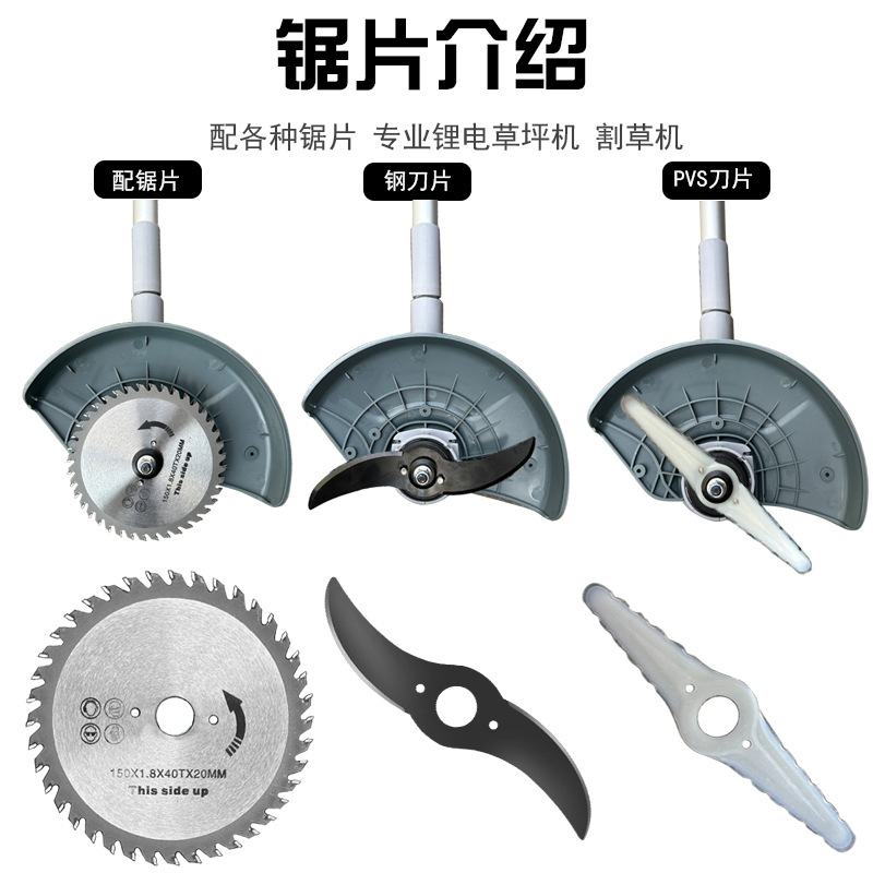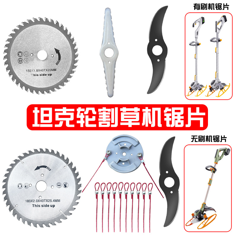 Бесщеточная пила с цилиндрическим колесом; Бесщеточное колесо бака с прямым лезвием; Бесщеточный канат для обрезки колес бака 10 шт. + держатель ножа; Бесщеточная газонокосилка с баком, 10 веревок для травы; Пильное полотно с матовым колесом бака; Матовое колесо бака с прямым лезвием; Матовое колесо бака, 1 нейлоновое лезвие; Матовые колеса бака, 5 нейлоновых лезвий.