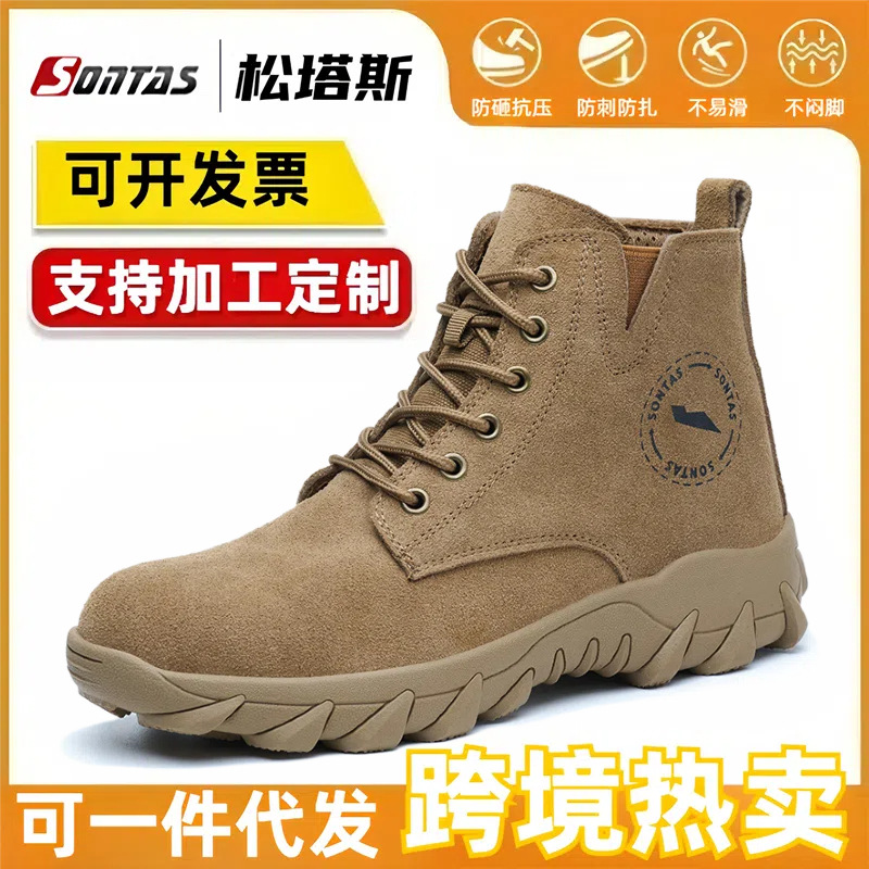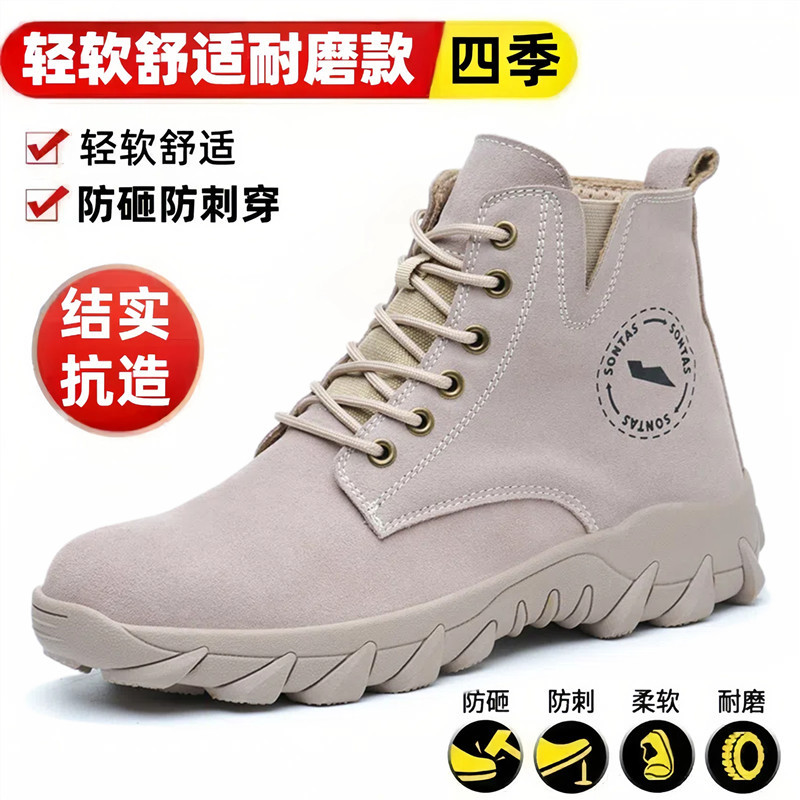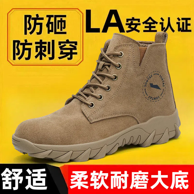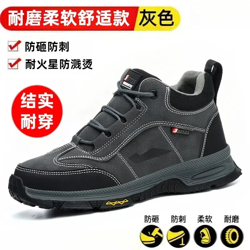 Мужские защитные ботинки с противоударной и противопрокольной стальной пластиной и стальным подноском, летние высокие рабочие ботинки для строительных площадок, прочные и легкие.