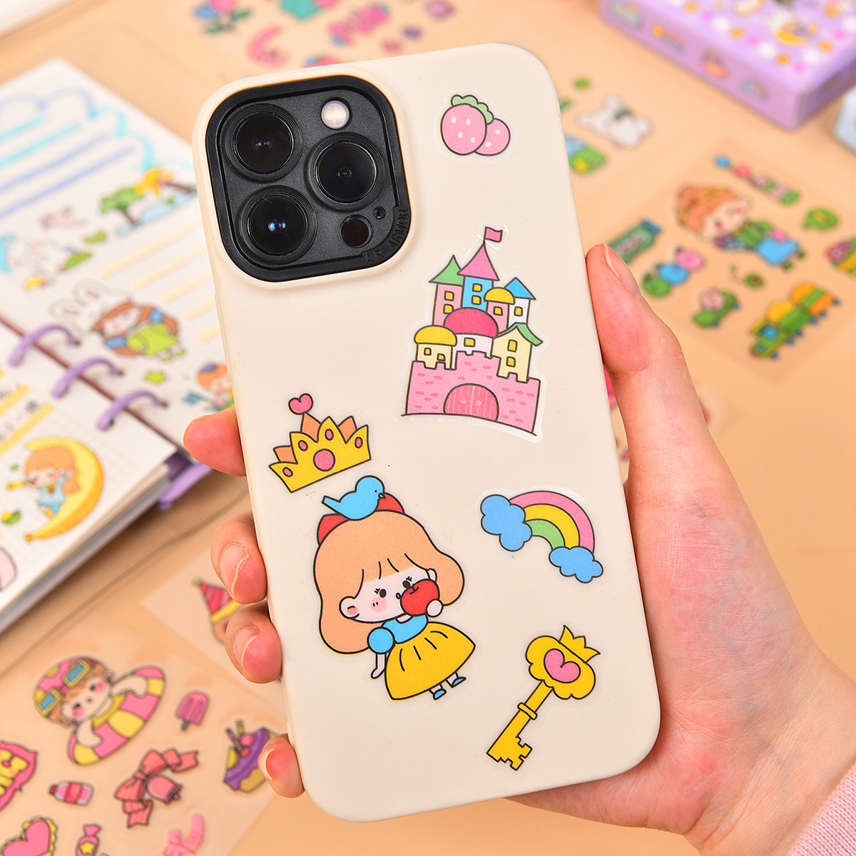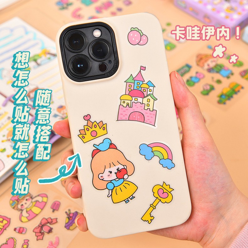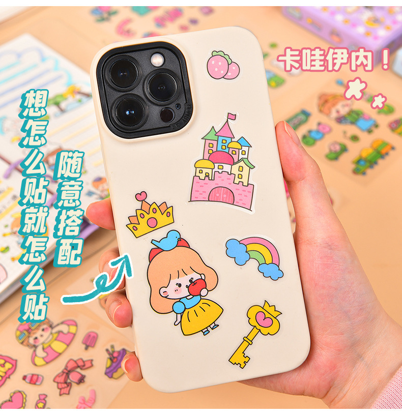 Водонепроницаемые наклейки из ПЭТ, без повторов, оптом для трансграничной торговли, декоративные листы с мультяшными рисунками, оптовая продажа с клейкой основой