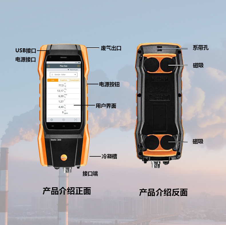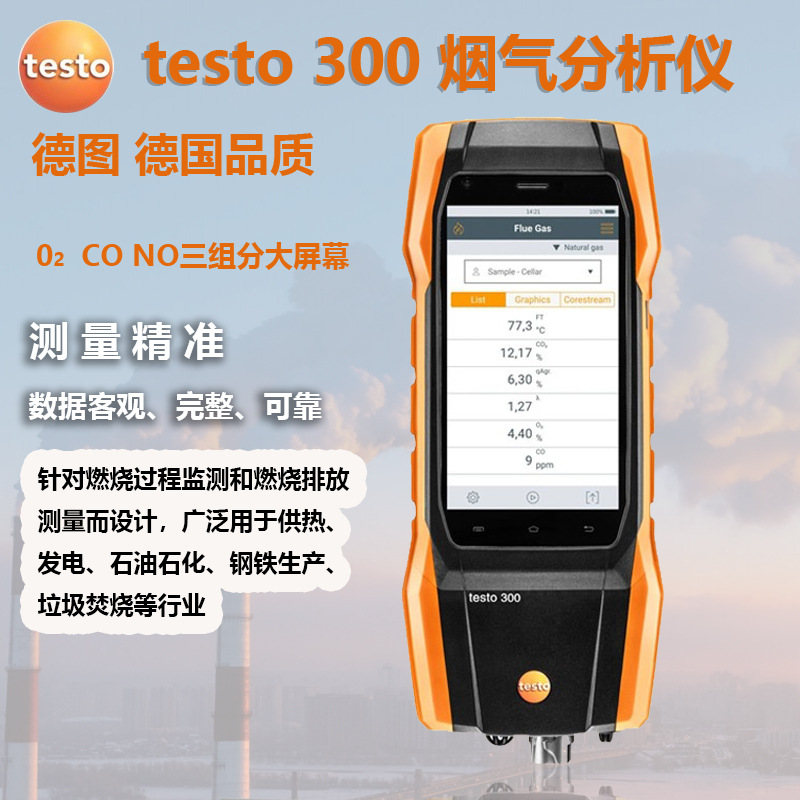 Производство тепловой энергии, нефтяная и нефтехимическая промышленность, сталелитейное производство, testo300, сжигание отходов и другие отрасли промышленности.