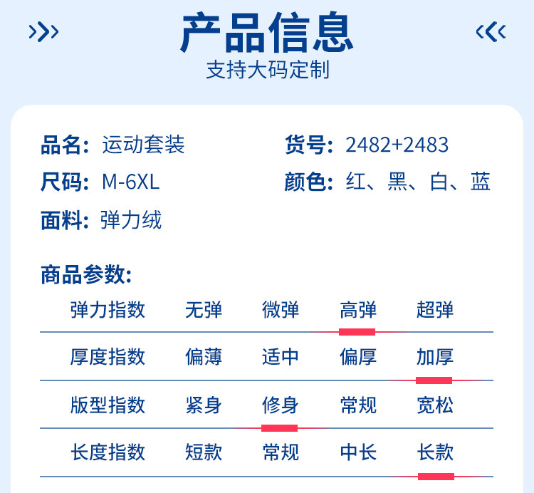 Большая красная одежда 2482 + красные брюки 2483; 2482 белая одежда + 2483 белые брюки; Серая одежда 2482 + серые брюки 2483; 2482 черная одежда + 2483 черные брюки.; Одежда 2482 винно-красного цвета + брюки 2483 винно-красного цвета