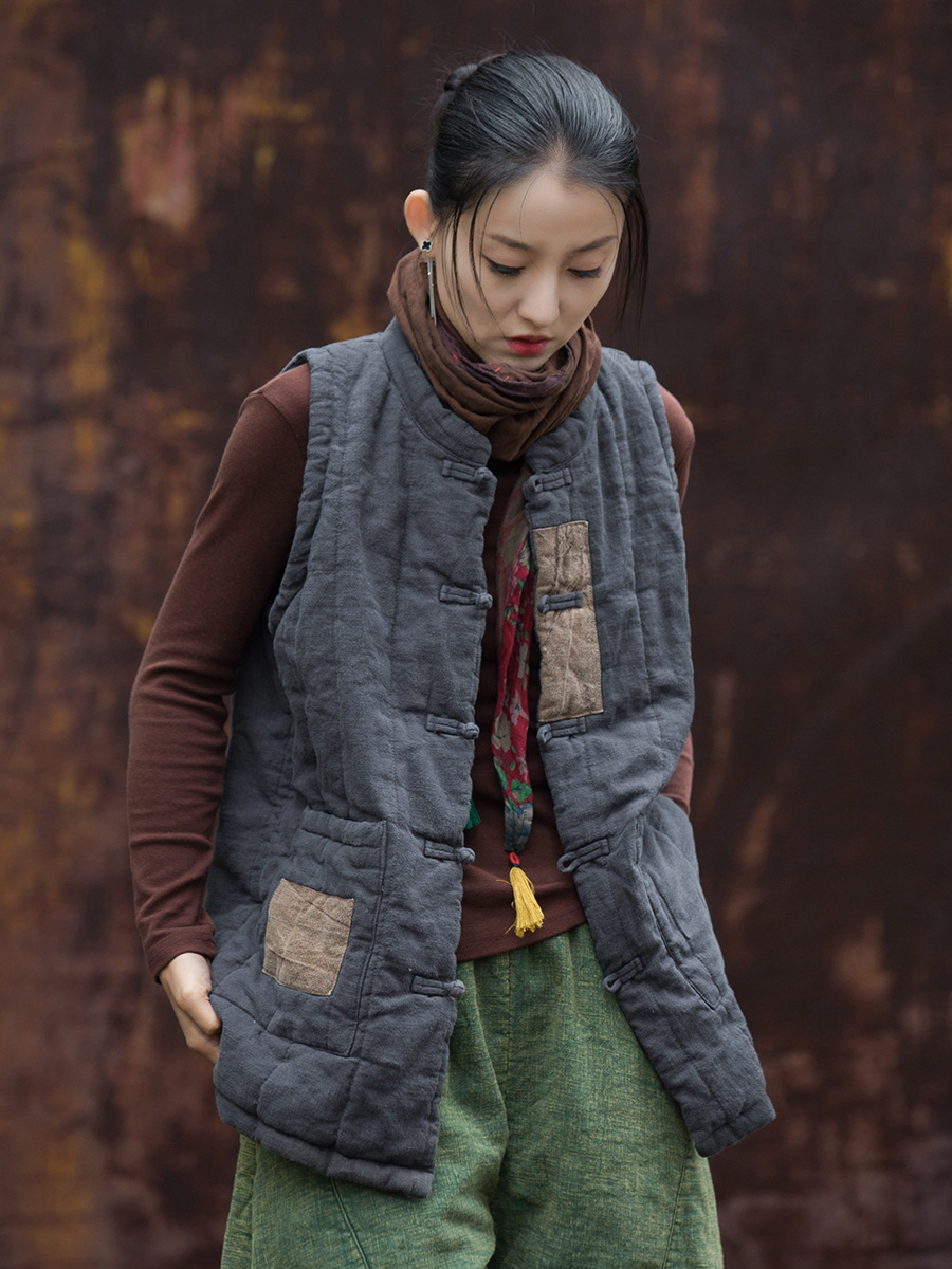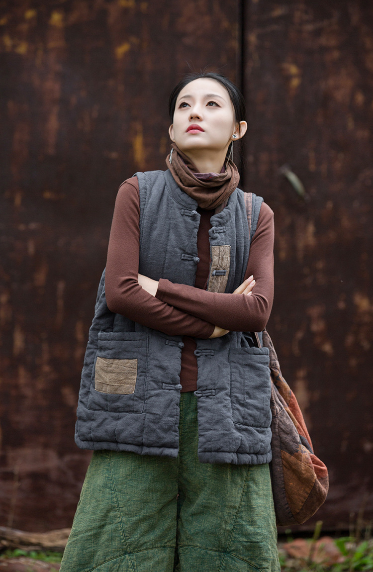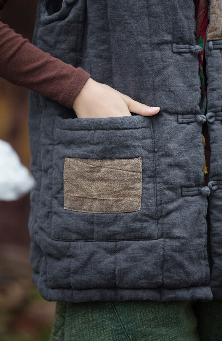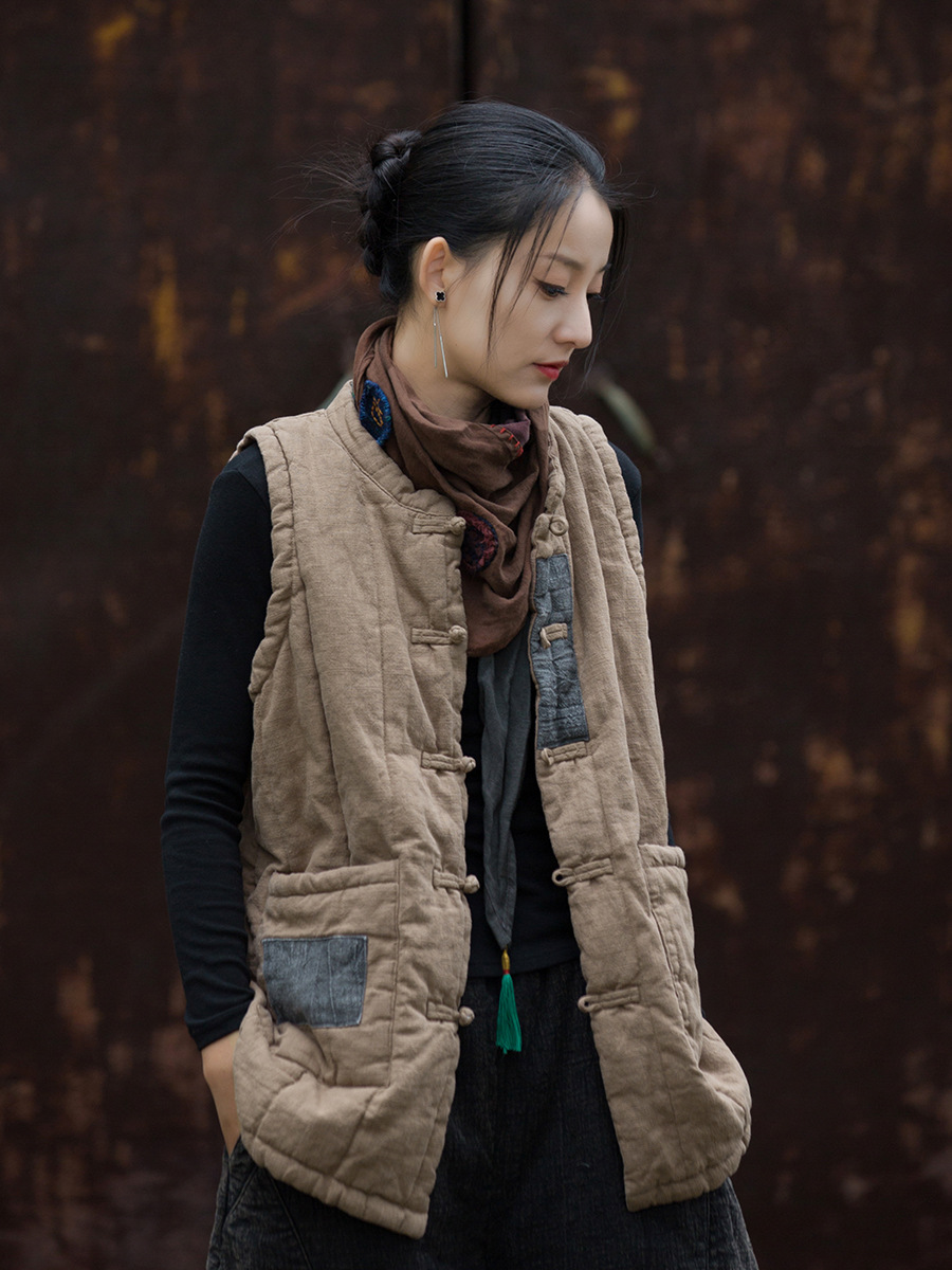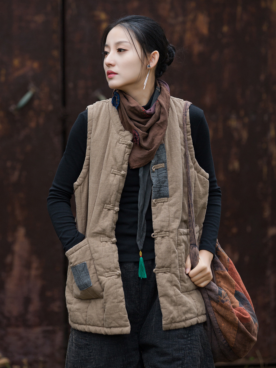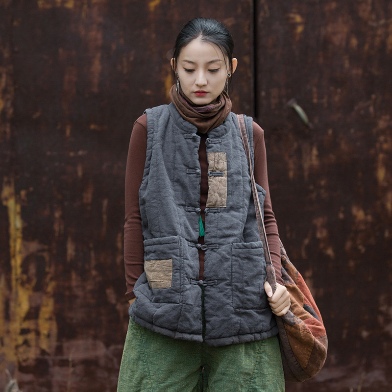 Новая зимняя коллекция: Женская одежда из хлопка и льна, улучшенная стеганая лоскутная верхняя одежда из рами, винтажный стиль, теплый женский жилет