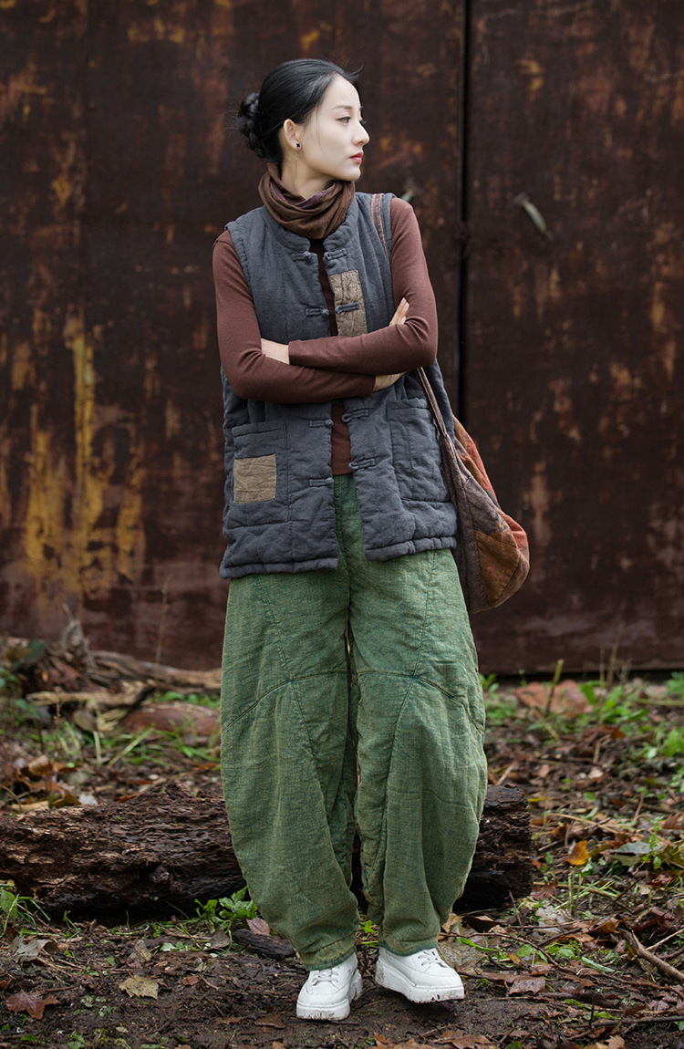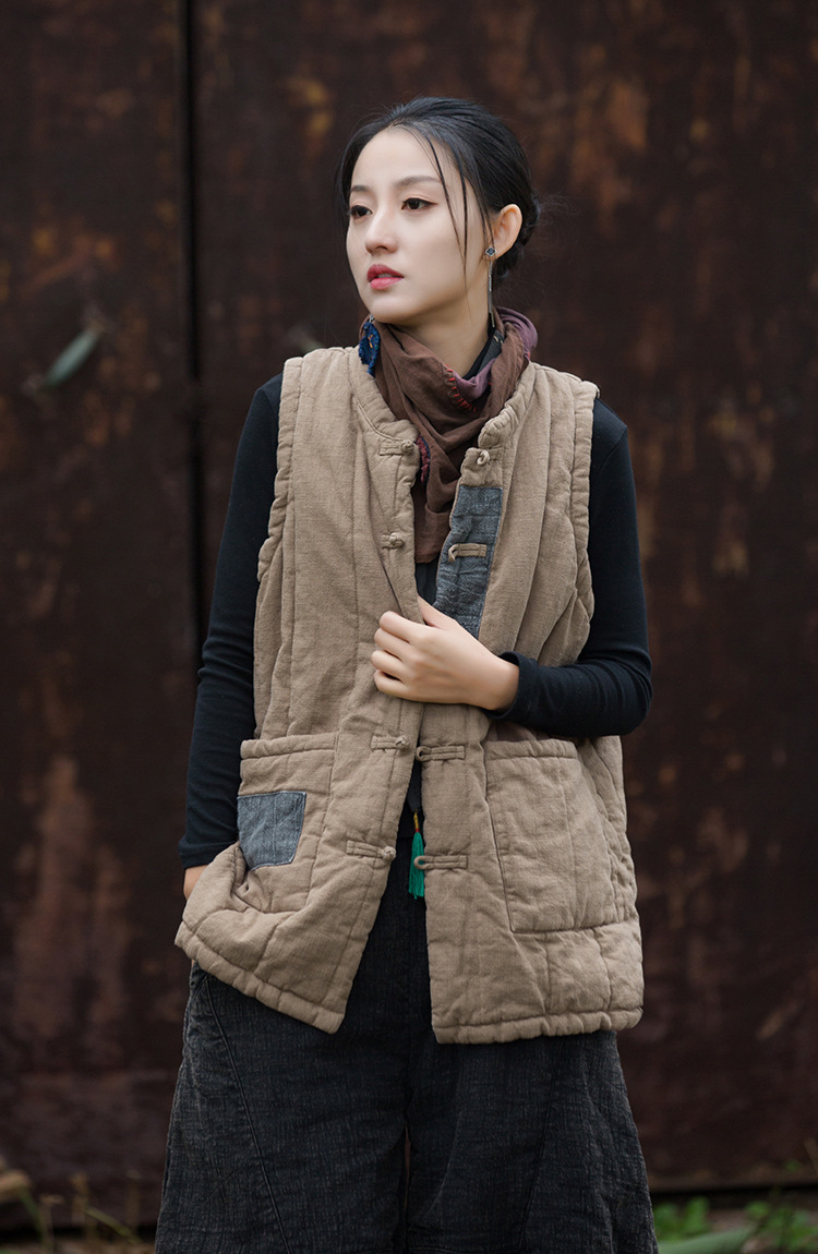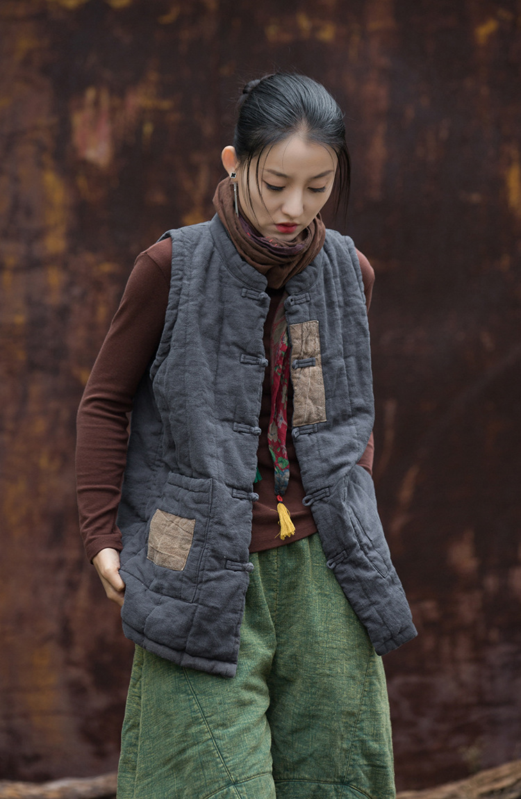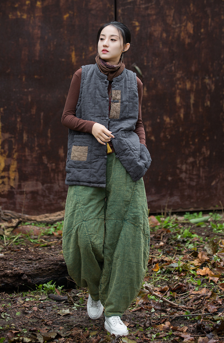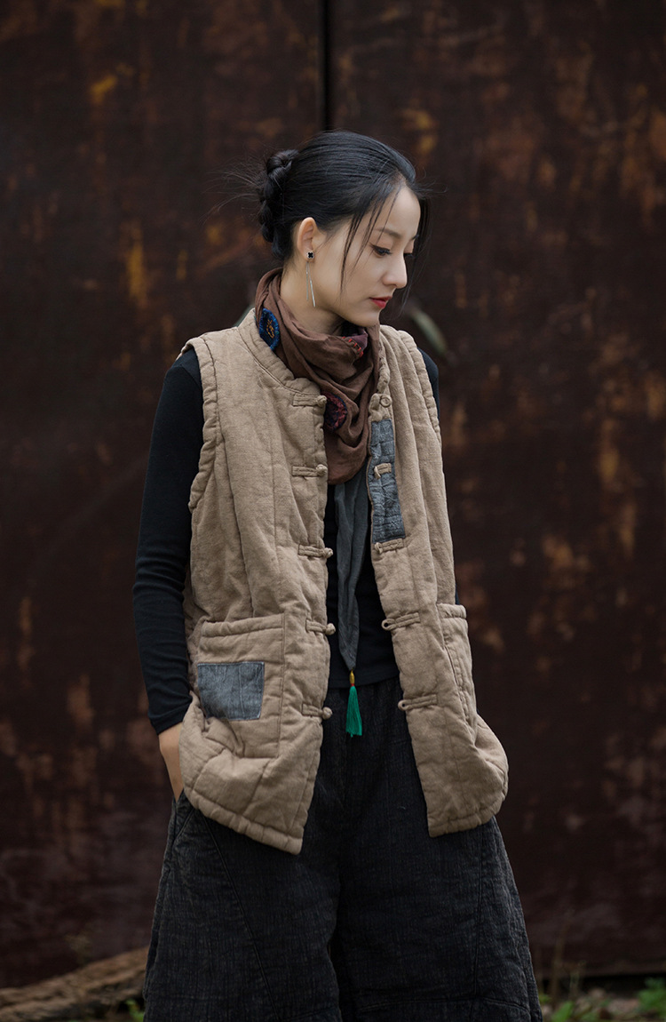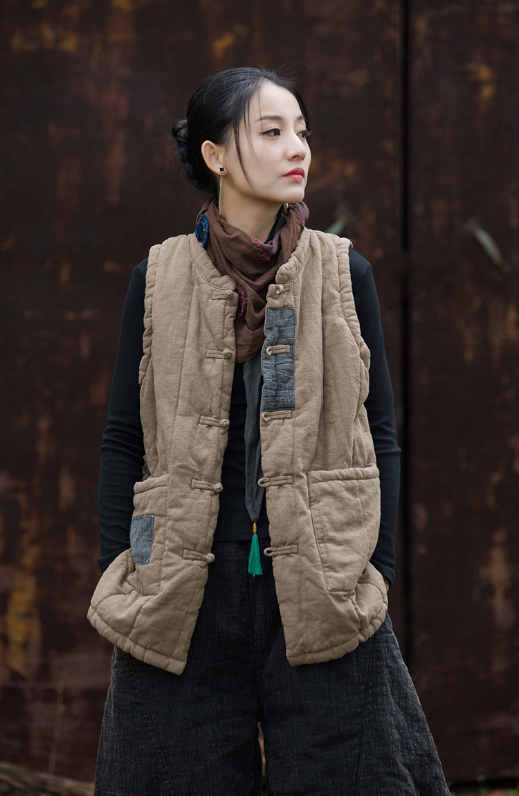 Новая зимняя коллекция: Женская одежда из хлопка и льна, улучшенная стеганая лоскутная верхняя одежда из рами, винтажный стиль, теплый женский жилет