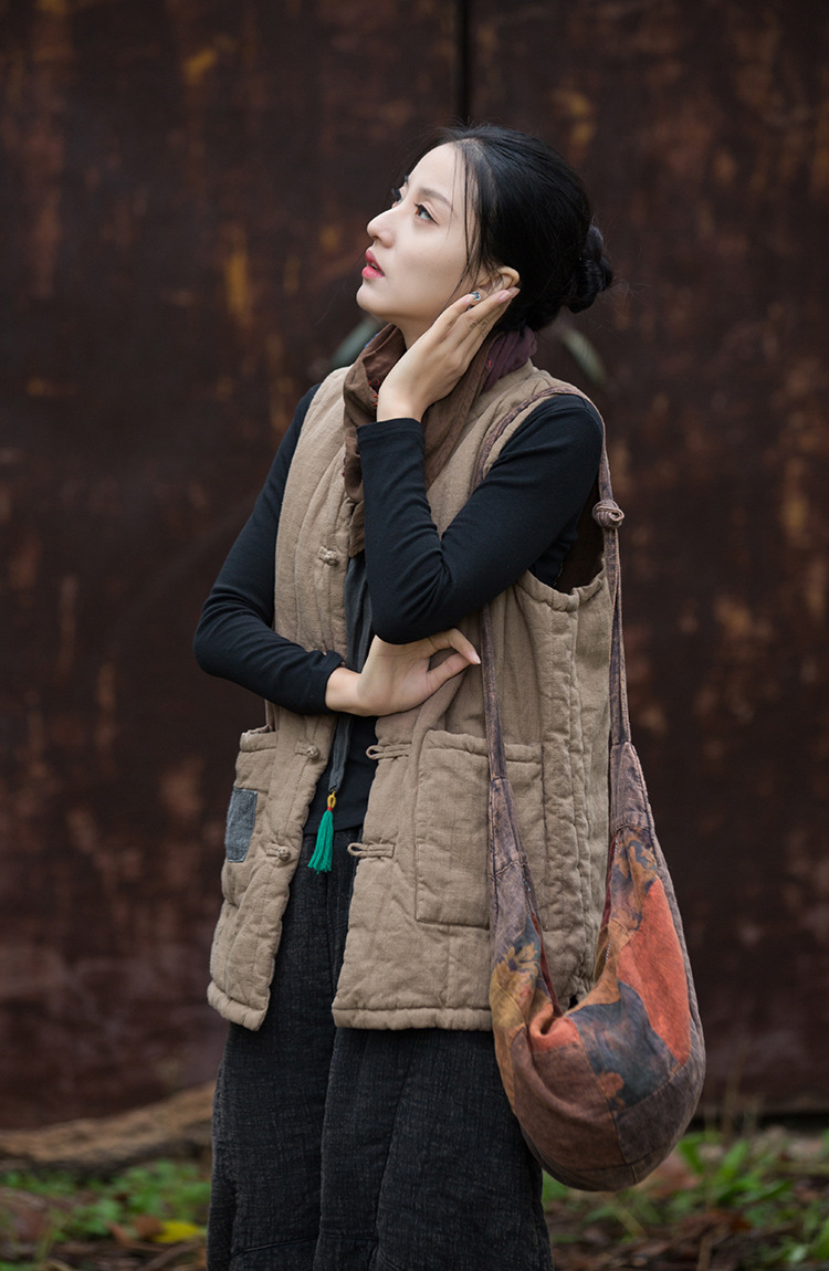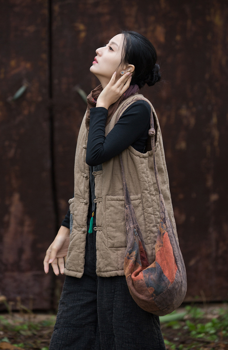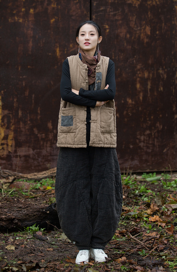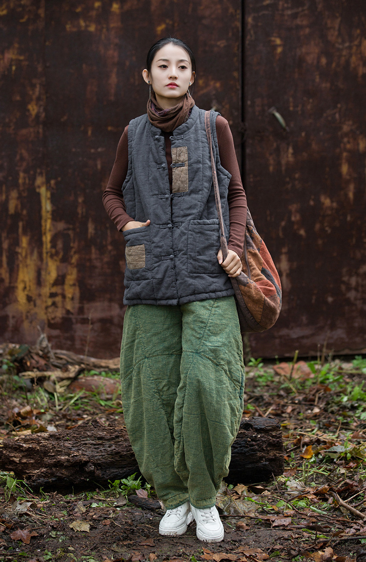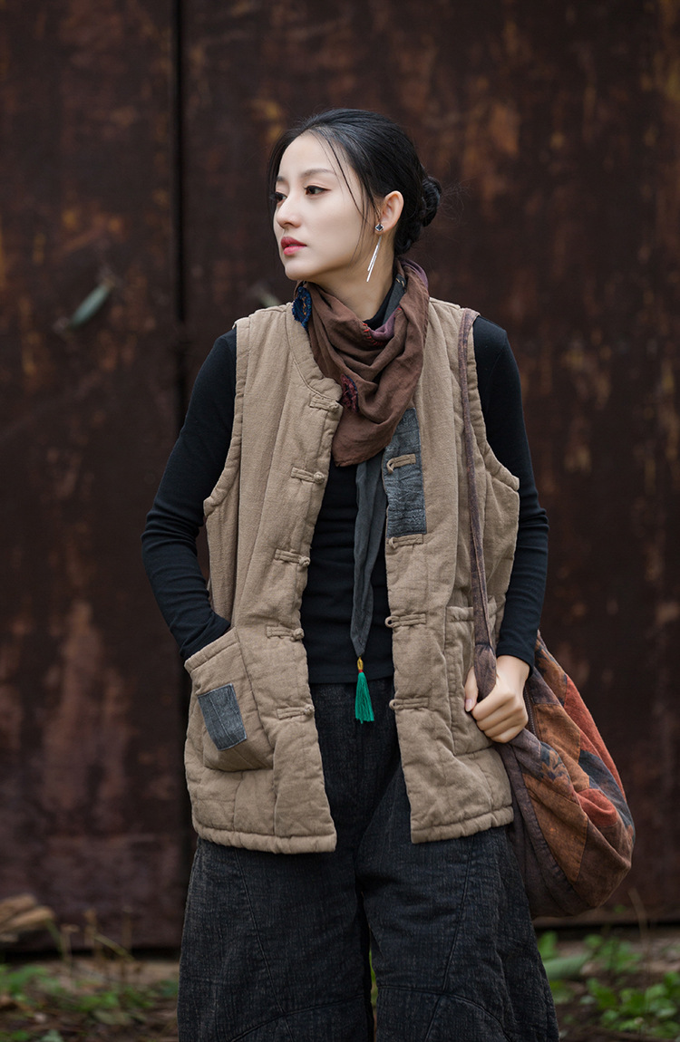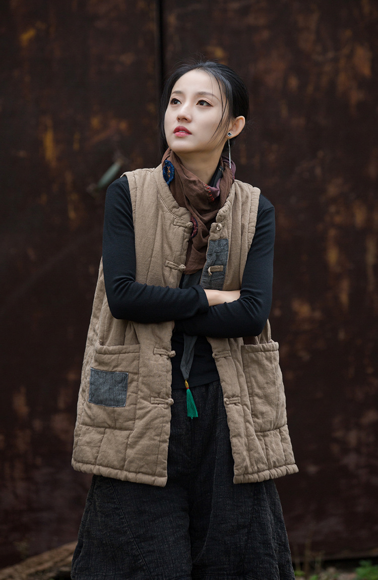 Новая зимняя коллекция: Женская одежда из хлопка и льна, улучшенная стеганая лоскутная верхняя одежда из рами, винтажный стиль, теплый женский жилет