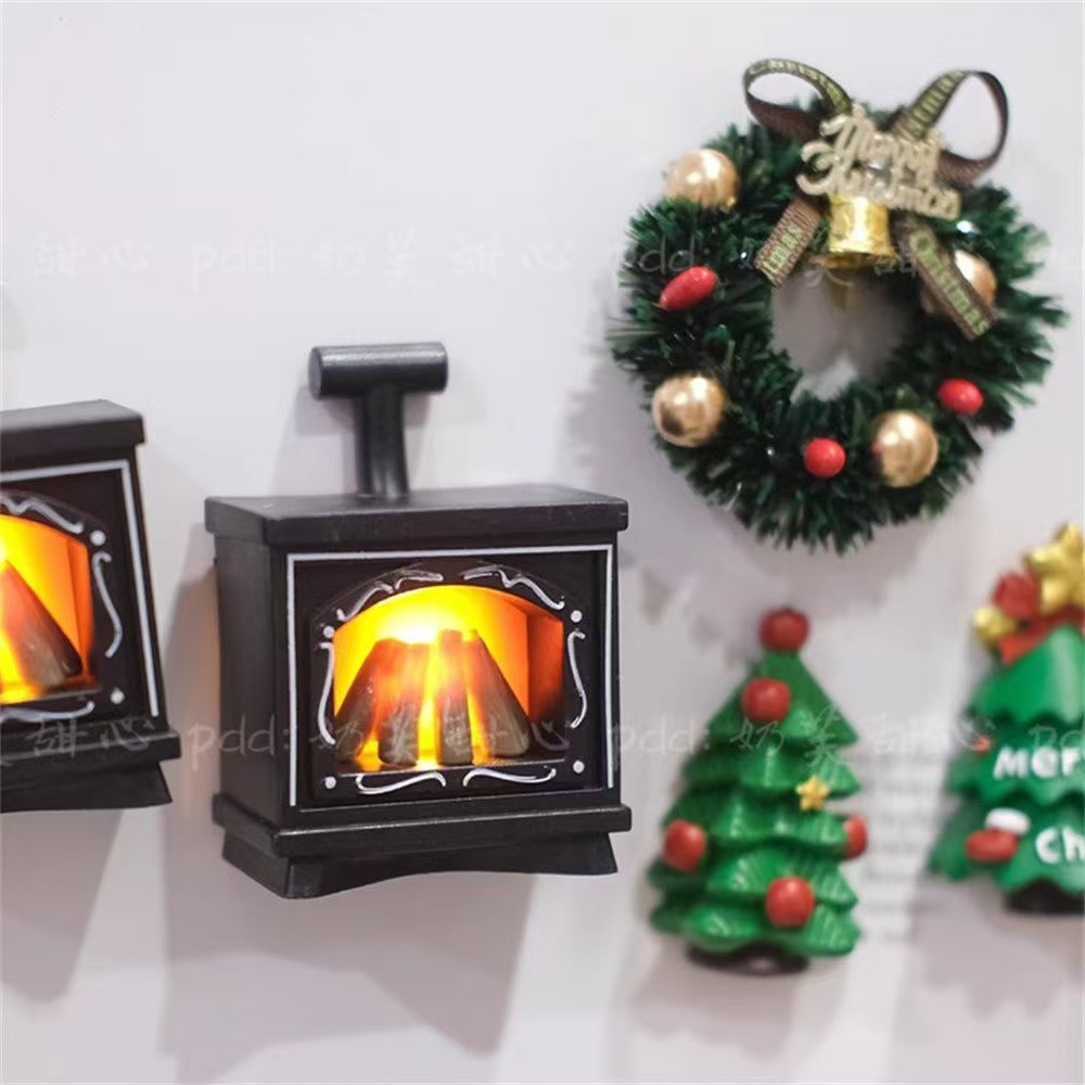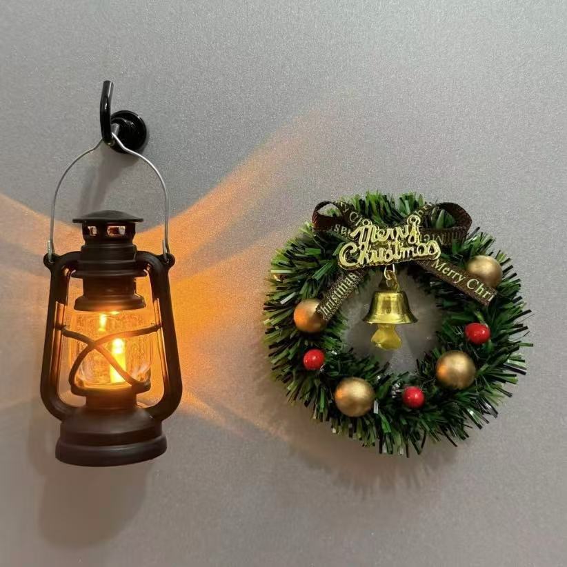 Тип А-Магнит на холодильник «Рождественский венок»-1 шт.; Тип B-мини-цилиндр, керосиновая лампа, магнитный магнит на холодильник; стиль А+В; Магнит на холодильник с имитацией светящегося обогревателя-Маленький Китти; Освещенный камин трехмерный мини-магнит на холодильник-1 упаковка