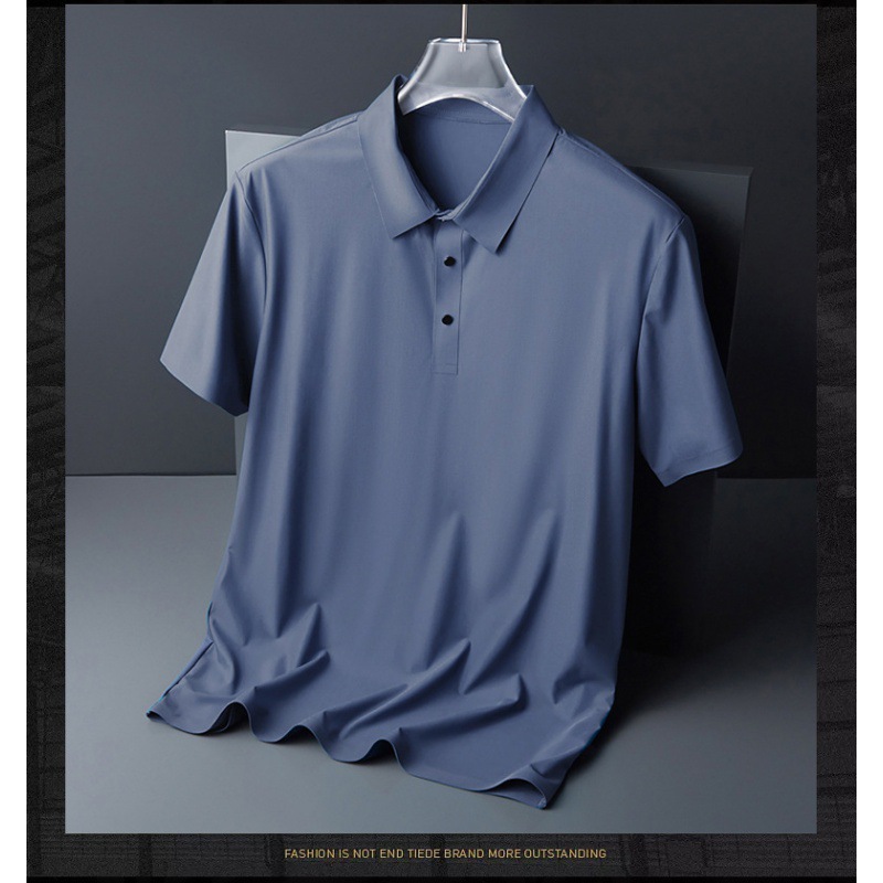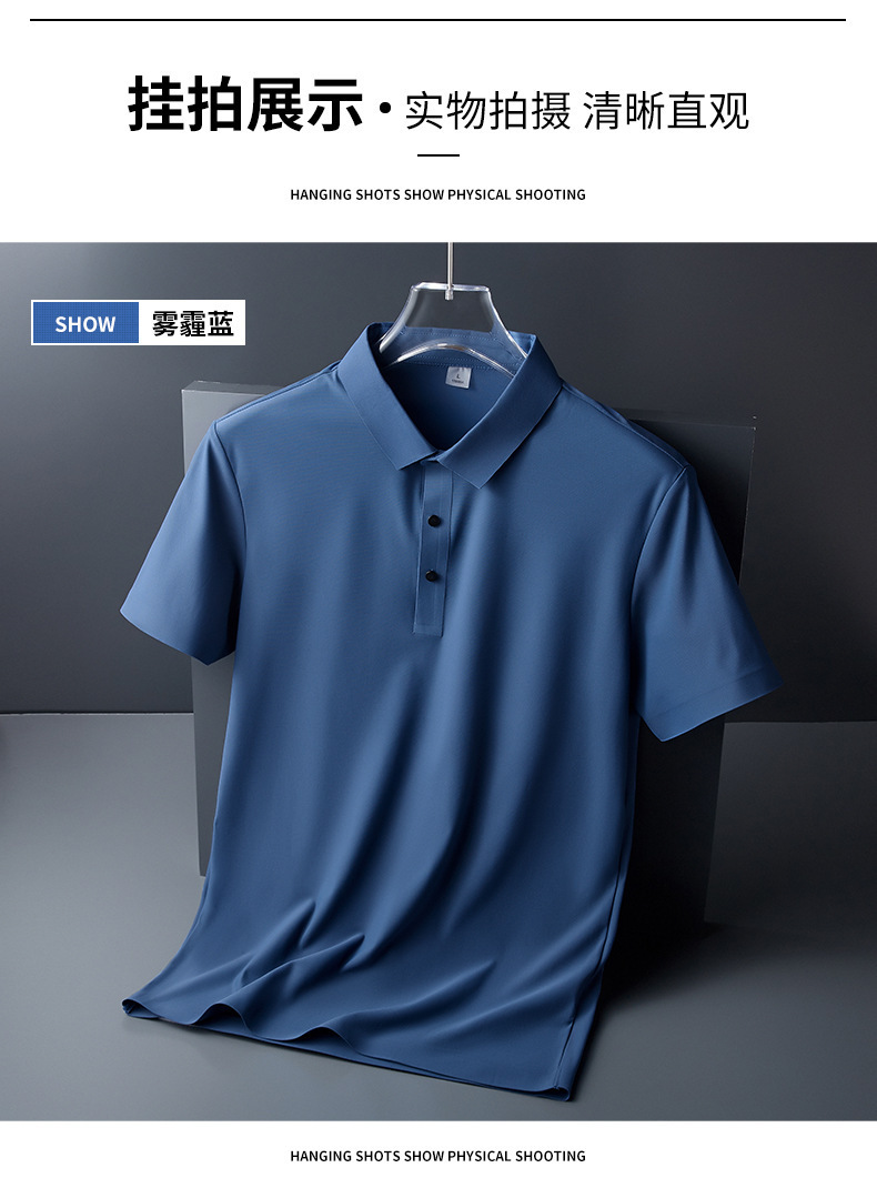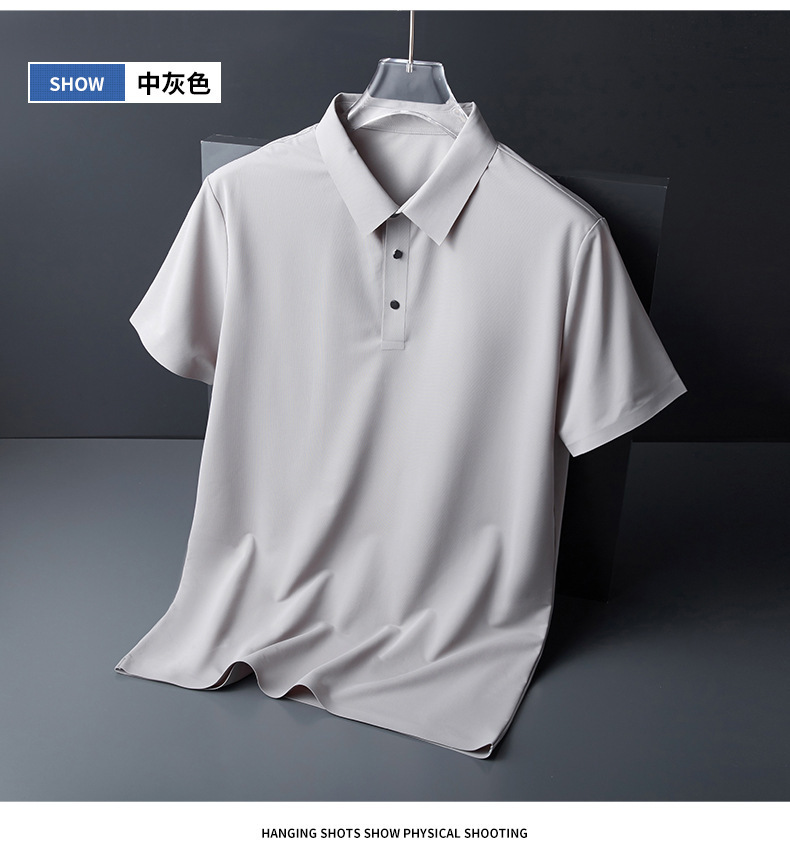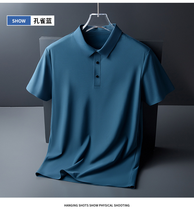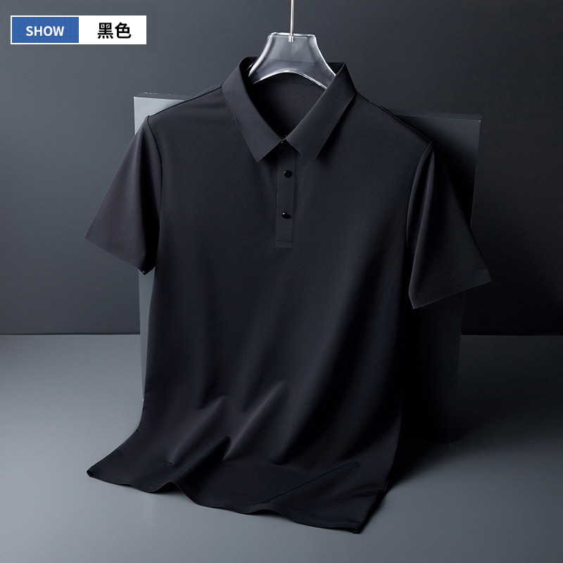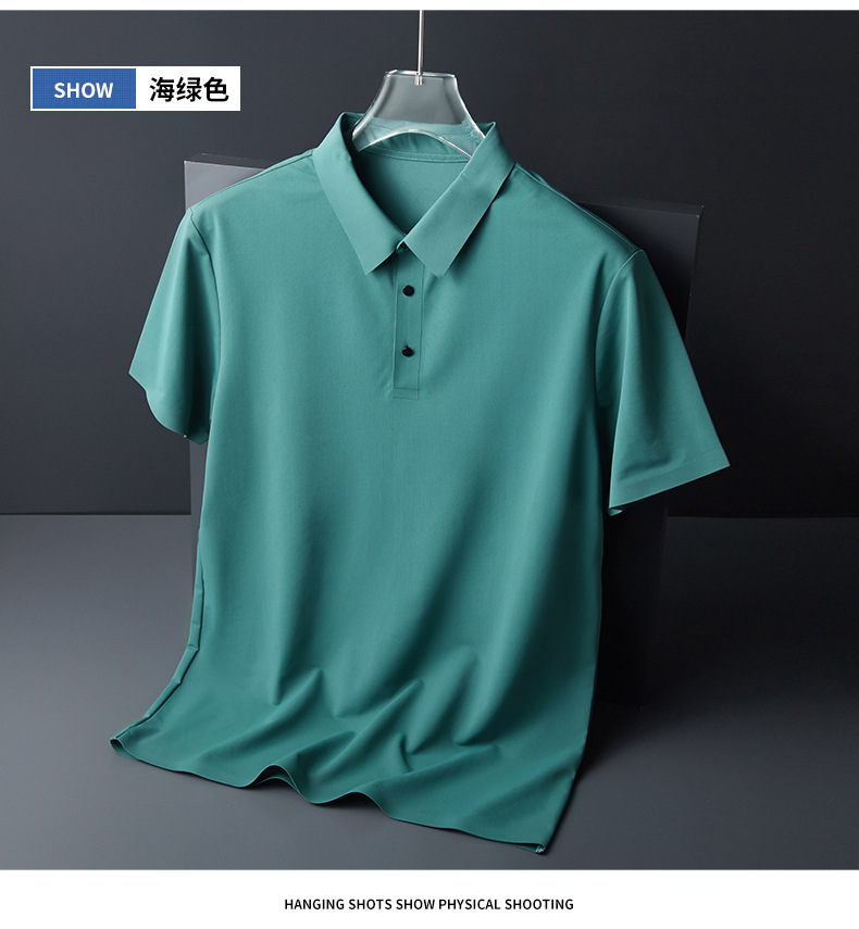 Футболка со льдом без следов мужской отворот бизнес сплошной цветной топ с половиной рукава
