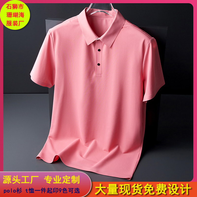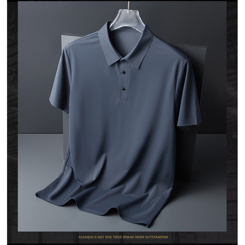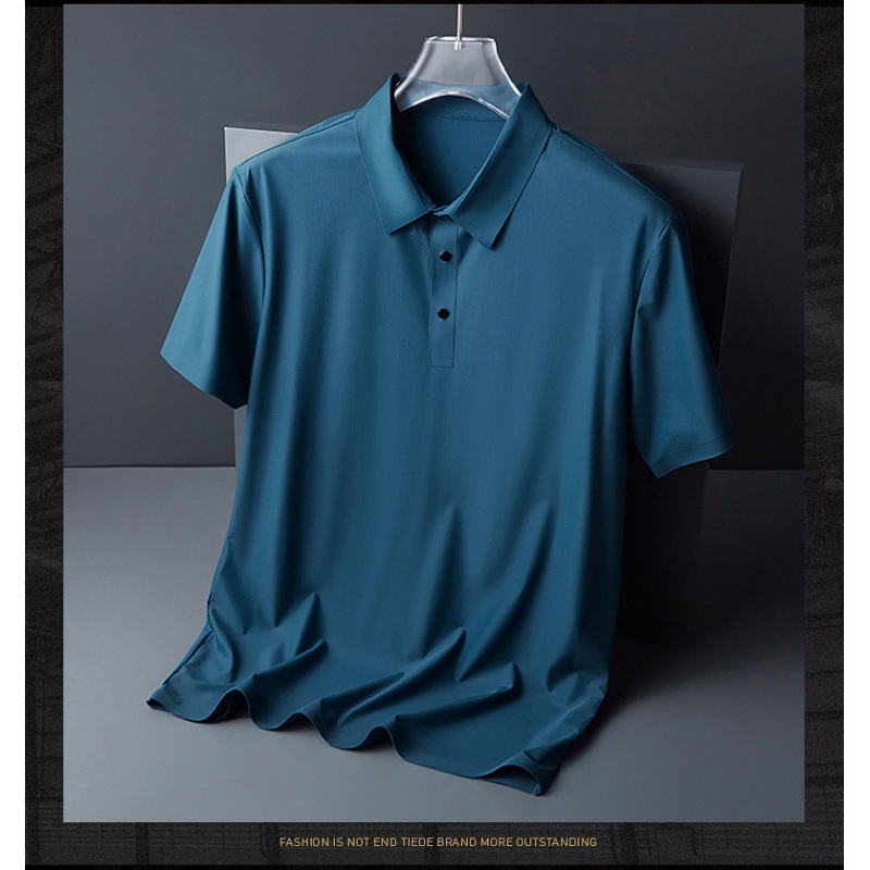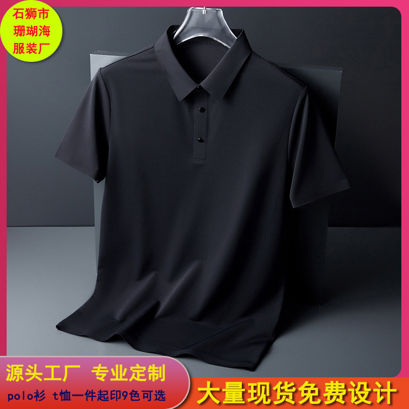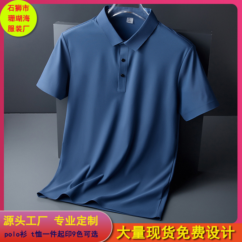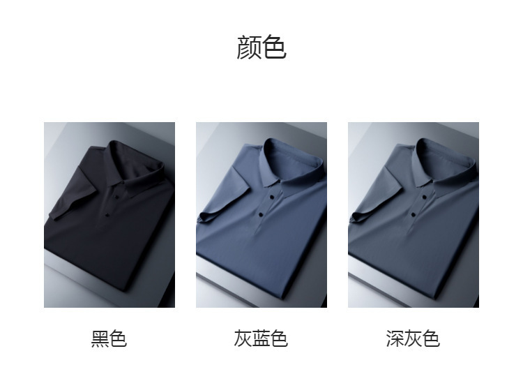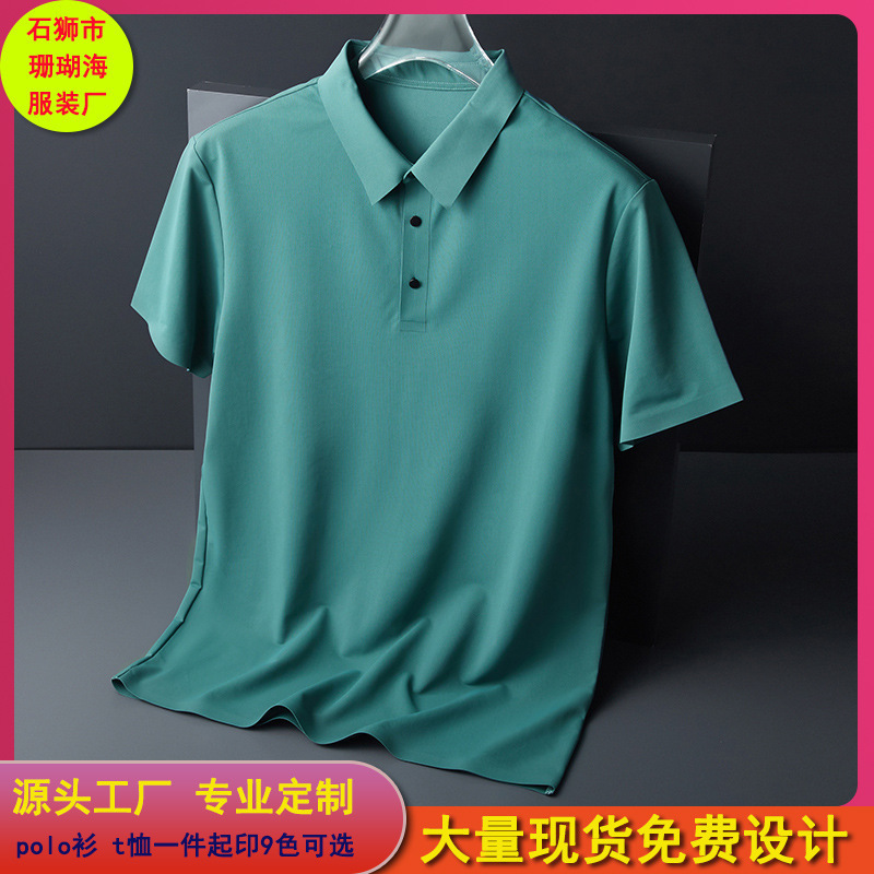 Футболка со льдом без следов мужской отворот бизнес сплошной цветной топ с половиной рукава