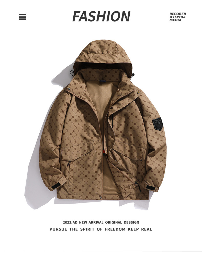 Новая стильная куртка для мужчин, весна-осень, молодежная повседневная мужская одежда, с отстегивающимся капюшоном, куртка для активного отдыха