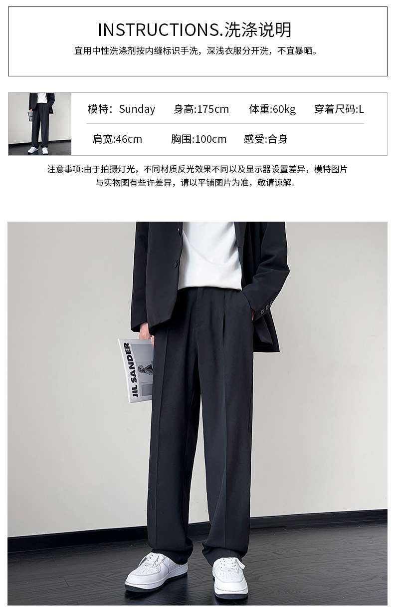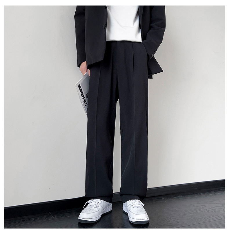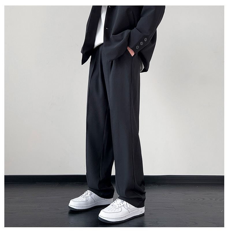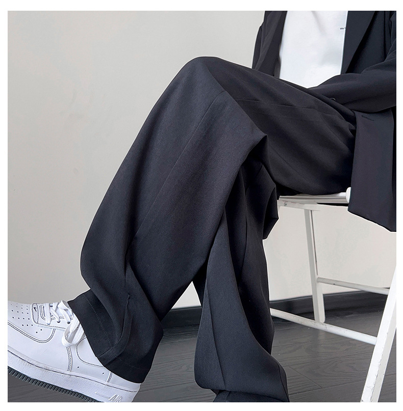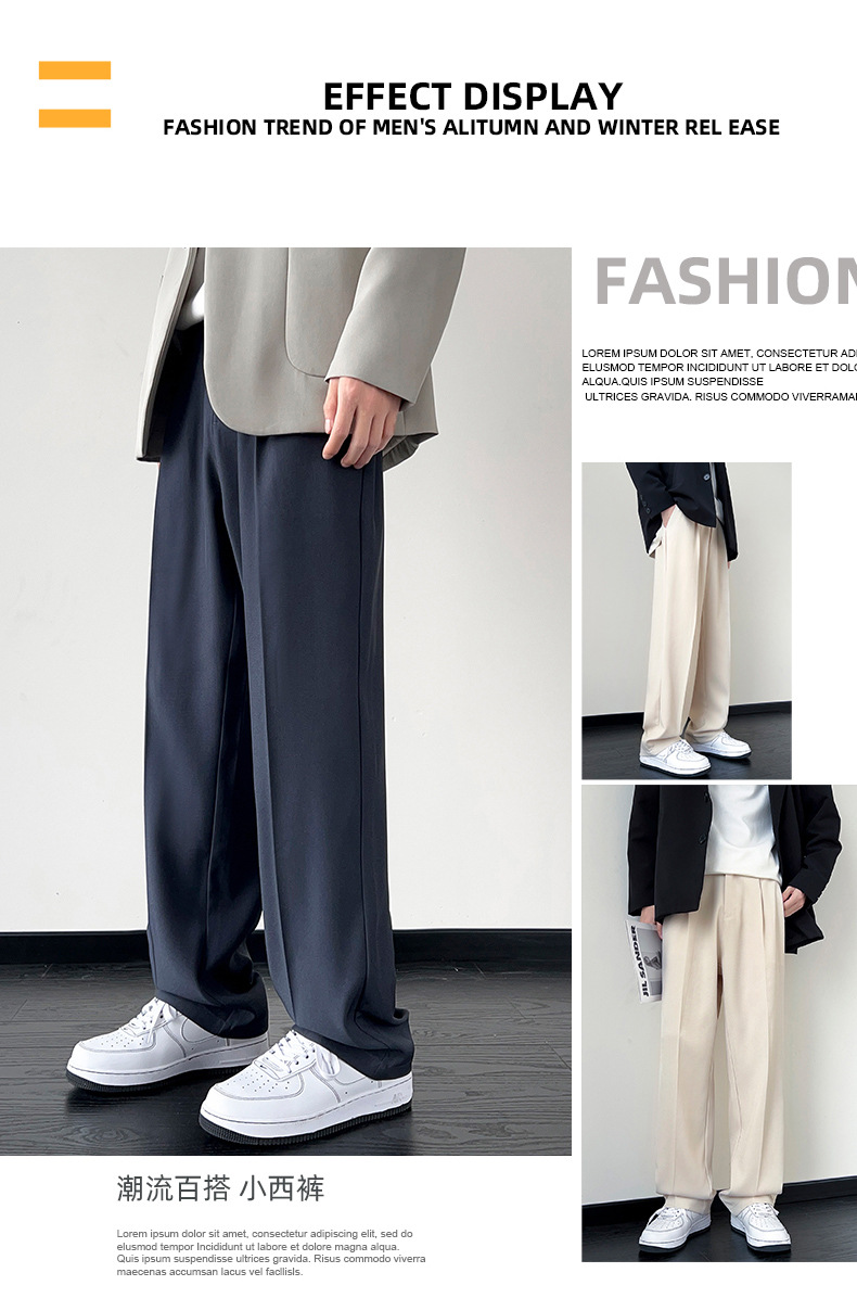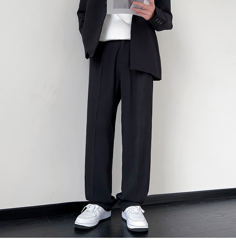 Маленькие брюки Мужские брюки Весна и Осень прилив Прямые повседневные брюки Мужские широкие ноги черные костюмы брюки