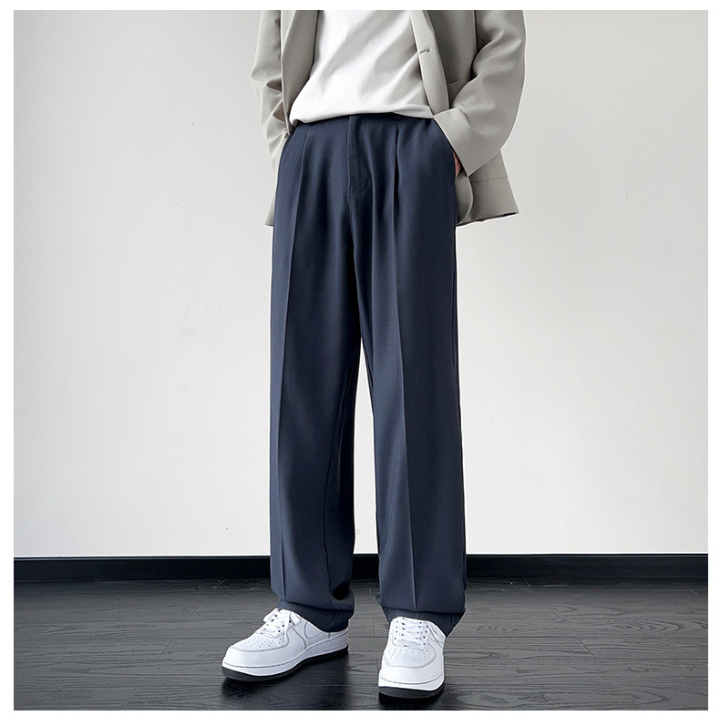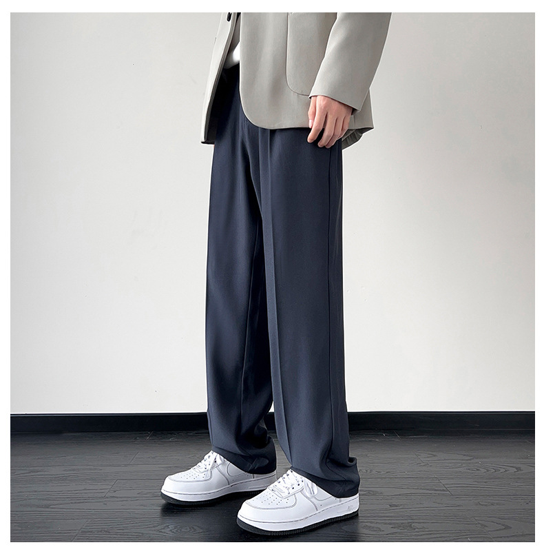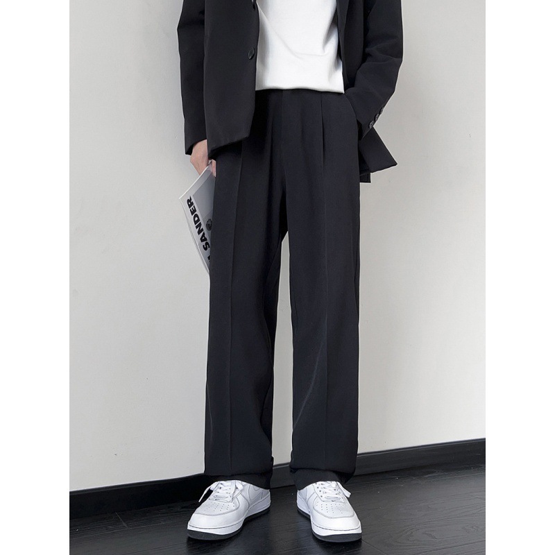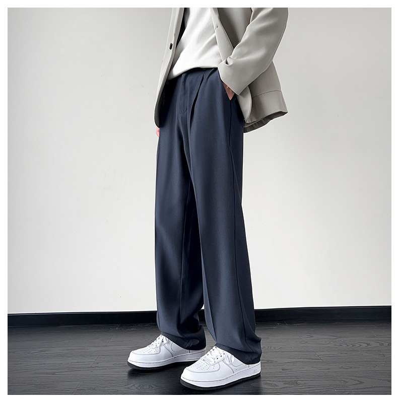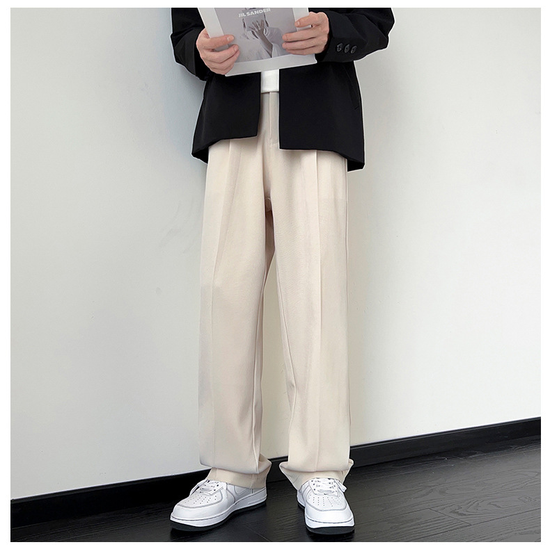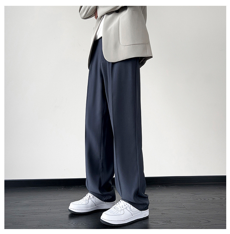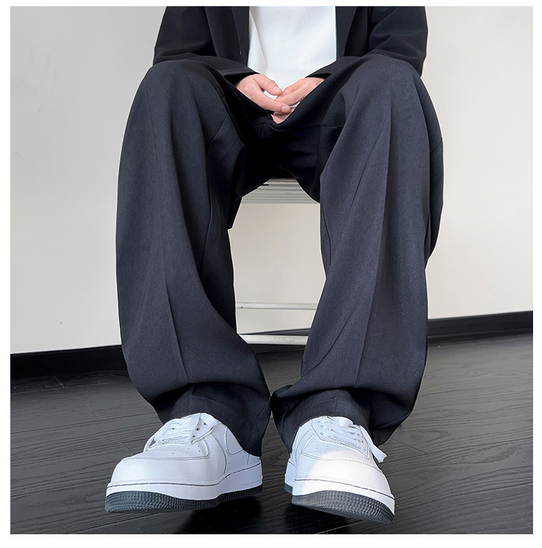 Маленькие брюки Мужские брюки Весна и Осень прилив Прямые повседневные брюки Мужские широкие ноги черные костюмы брюки