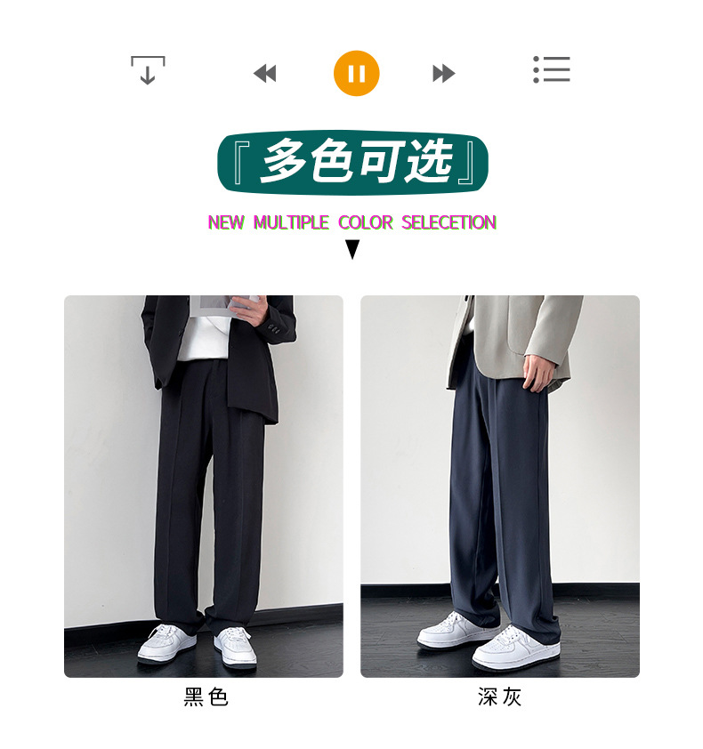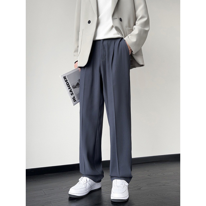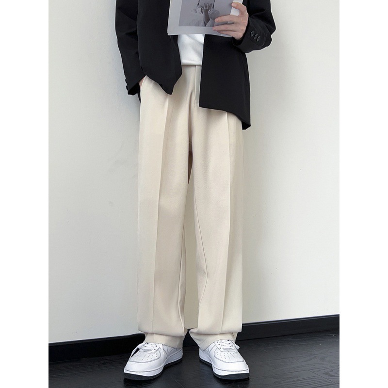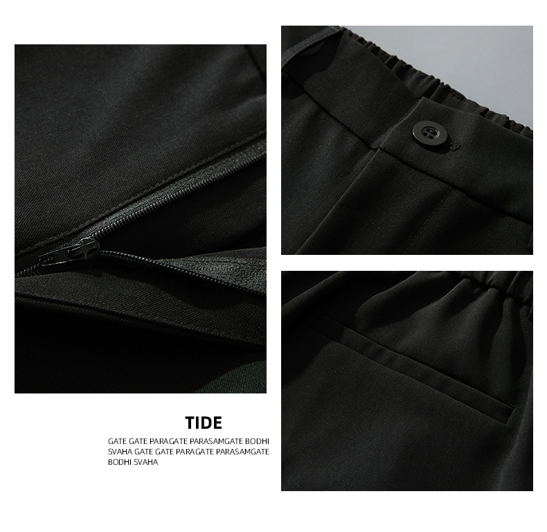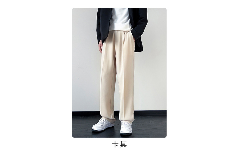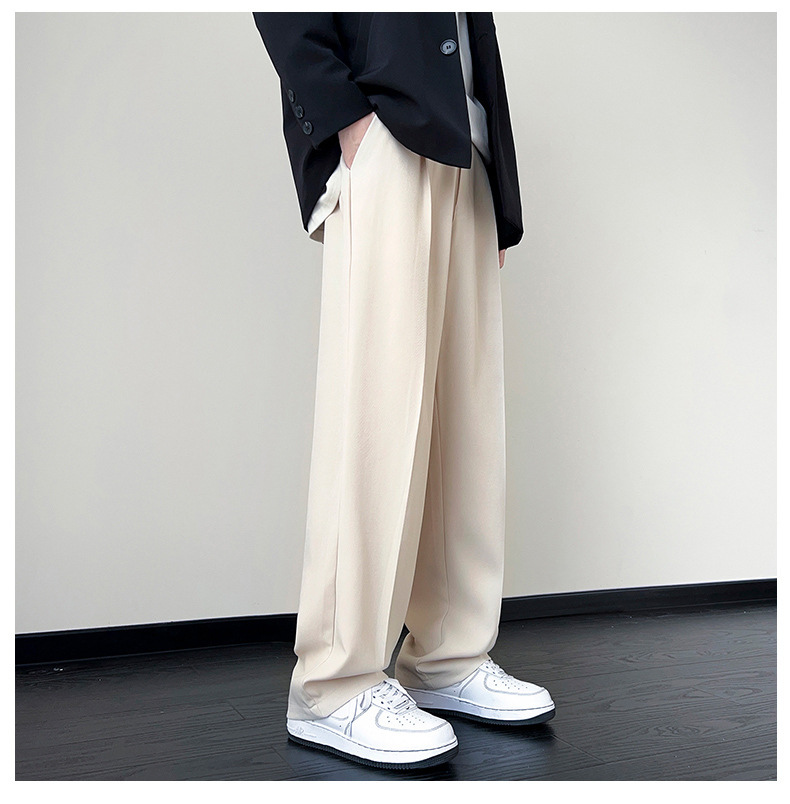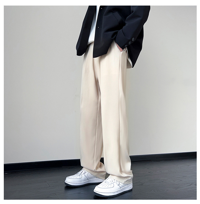 Маленькие брюки Мужские брюки Весна и Осень прилив Прямые повседневные брюки Мужские широкие ноги черные костюмы брюки
