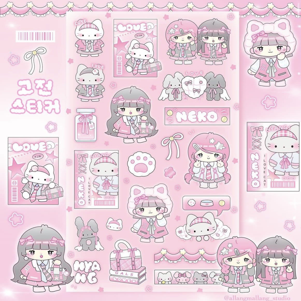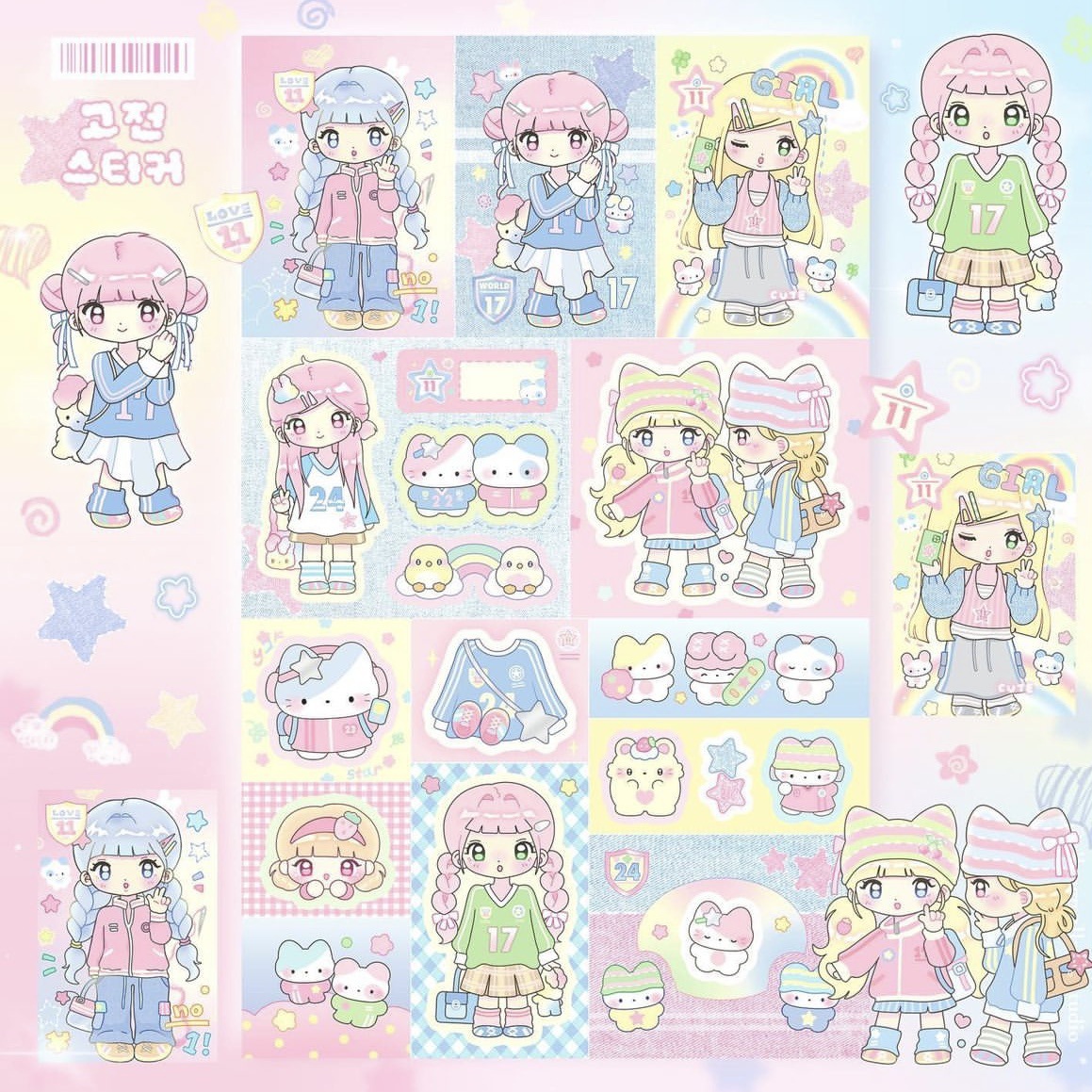 Весенний тур серии 2 милый мультфильм девушка ручная запись животных стикер ins Хан Гугу diy креативные наклейки