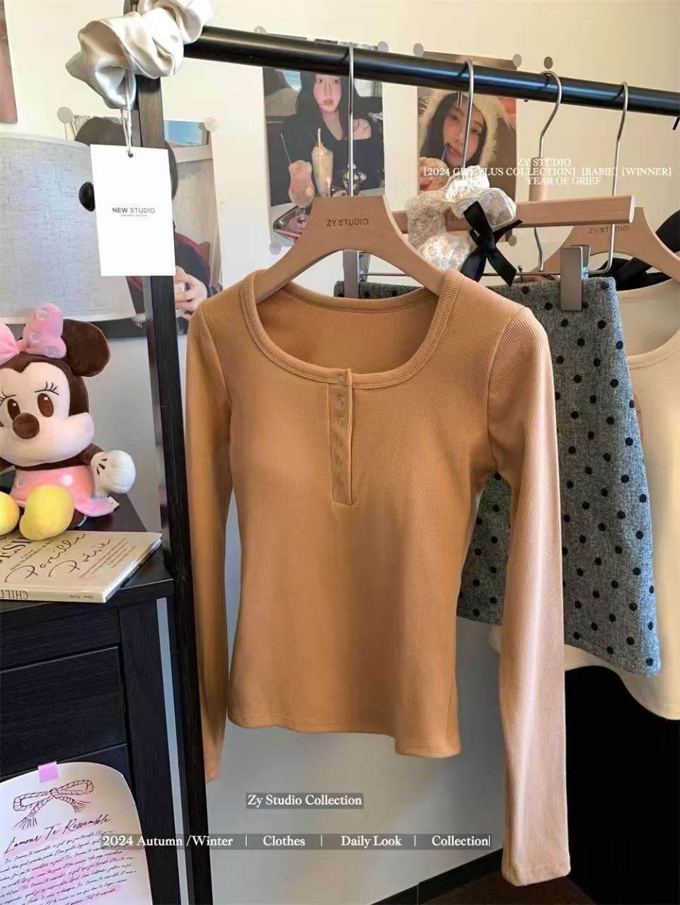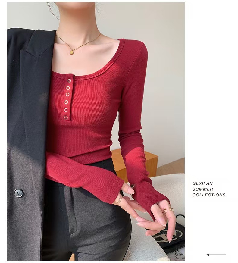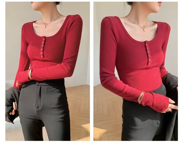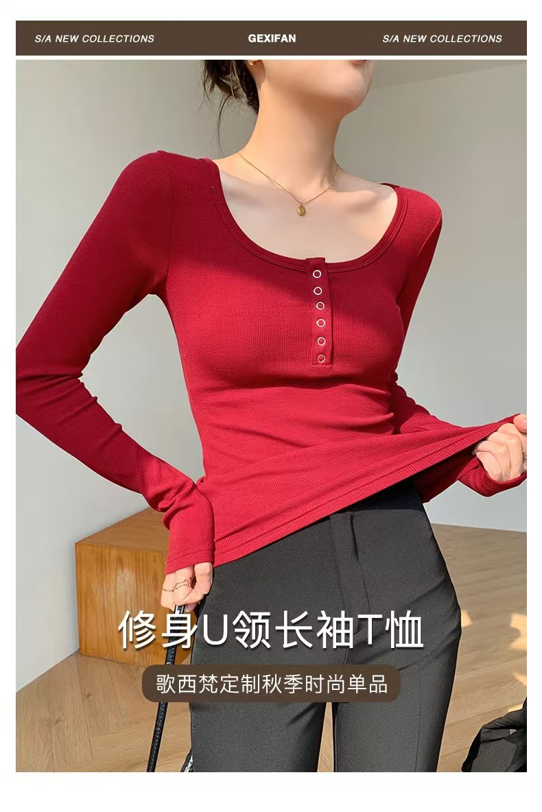 Квадратный воротник с длинными рукавами в начале осени теплая женская одежда новая нижняя рубашка