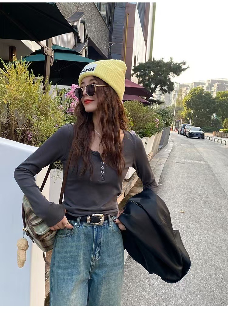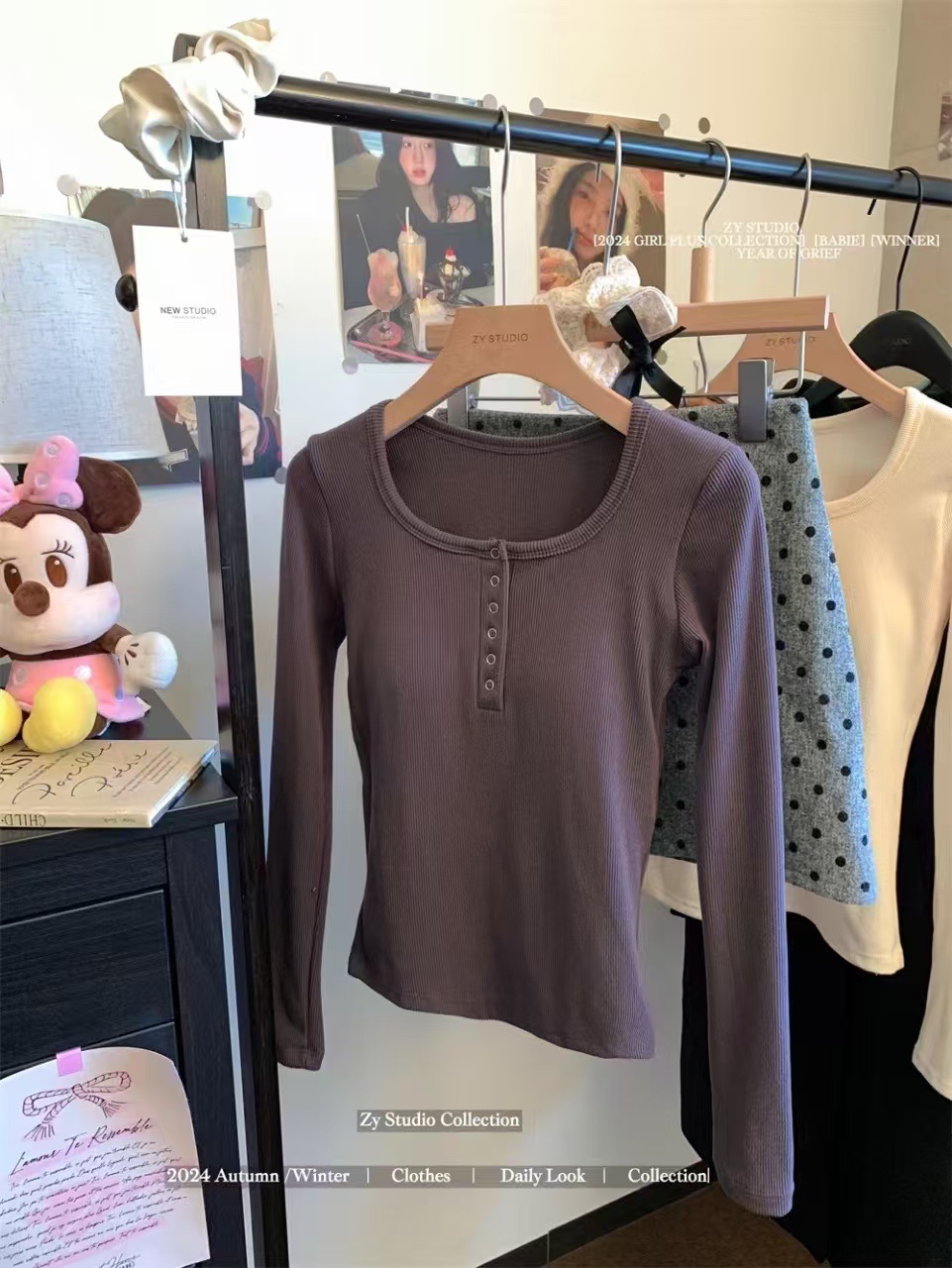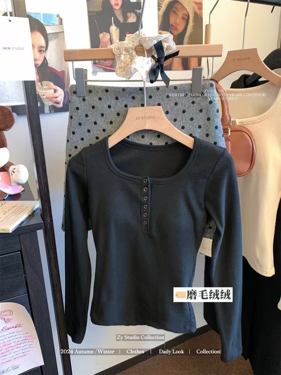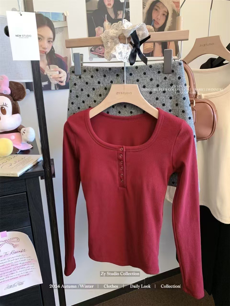 Квадратный воротник с длинными рукавами в начале осени теплая женская одежда новая нижняя рубашка