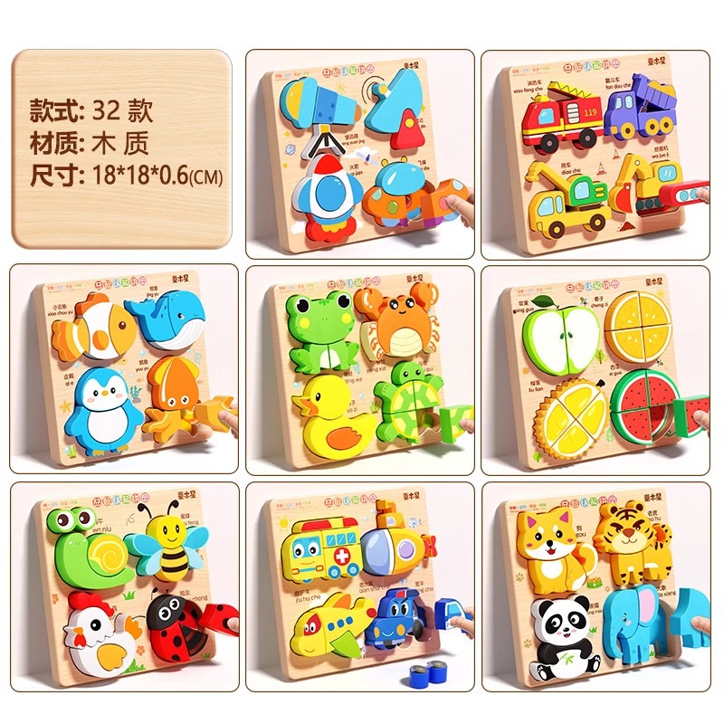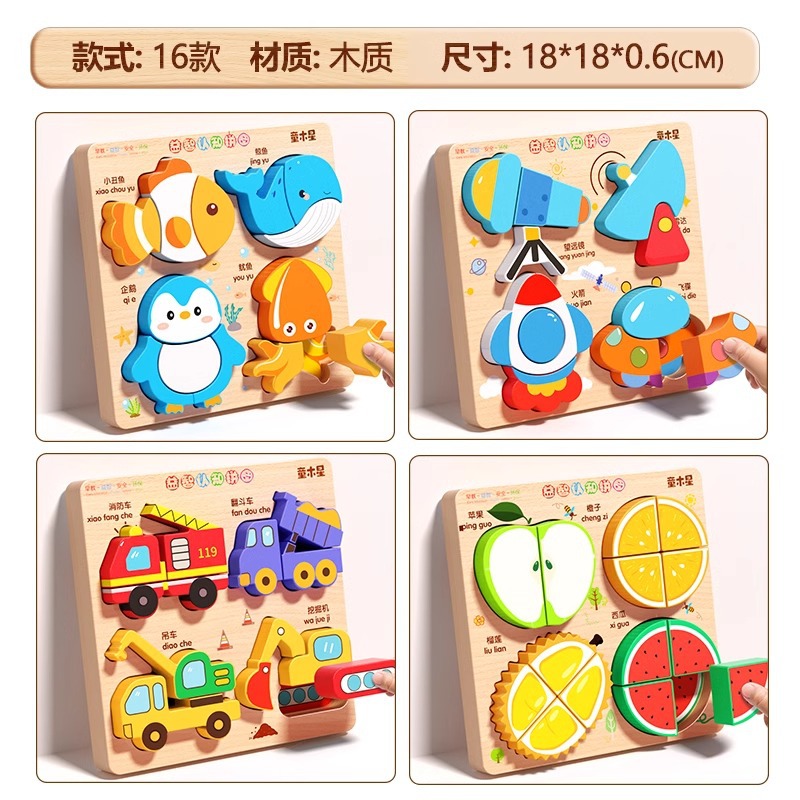 16 видов головоломок [Фрукты + Океан + Транспорт + Пробел]; 32 вида пазлов [животное + фрукты + пространство + транспорт + океан]; 16 видов пазлов [полный комплект]; 4 типа дорожных головоломок [пожарная машина + самосвал + кран + экскаватор]; 4 вида дорожных головоломок [автомобиль + подводная лодка + полицейская машина + скорой помощи]; 4 вида фруктовых пазлов [Яблоко + апельсин + дуриаан + арбуз]; 4 пазла с животными [щенок + тигр + слон + панда]; 4 пазла с животными [маленькая утка + маленькая лягушка + краб + маленькая черепаха]; 4 пазла с животными [курица + пчела + божья коровка + улитка]; 4 типа космических головоломок [радар + телескоп + ракета + летающее блюдце]; 4 вида морских головоломок [крыловая рыба + кит + кальмары + маленький пингвин]