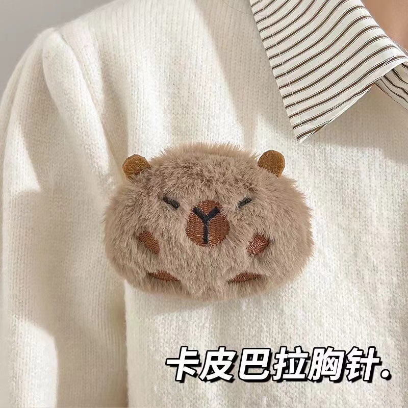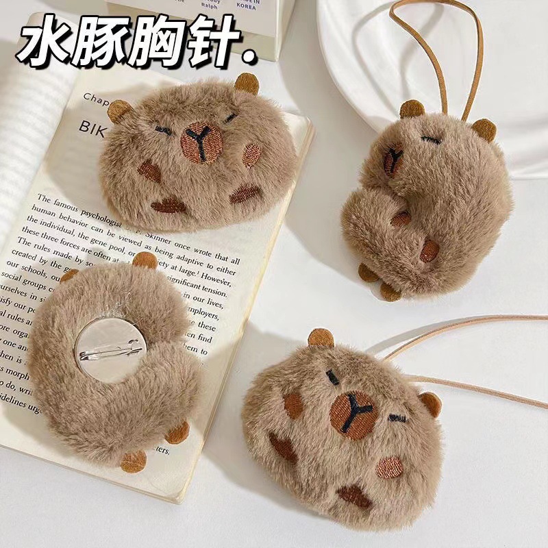 Плюшевая брошь-брелок в виде капибары, игрушка для украшения рюкзака, одежды, подарок для школьниц, значок-украшение