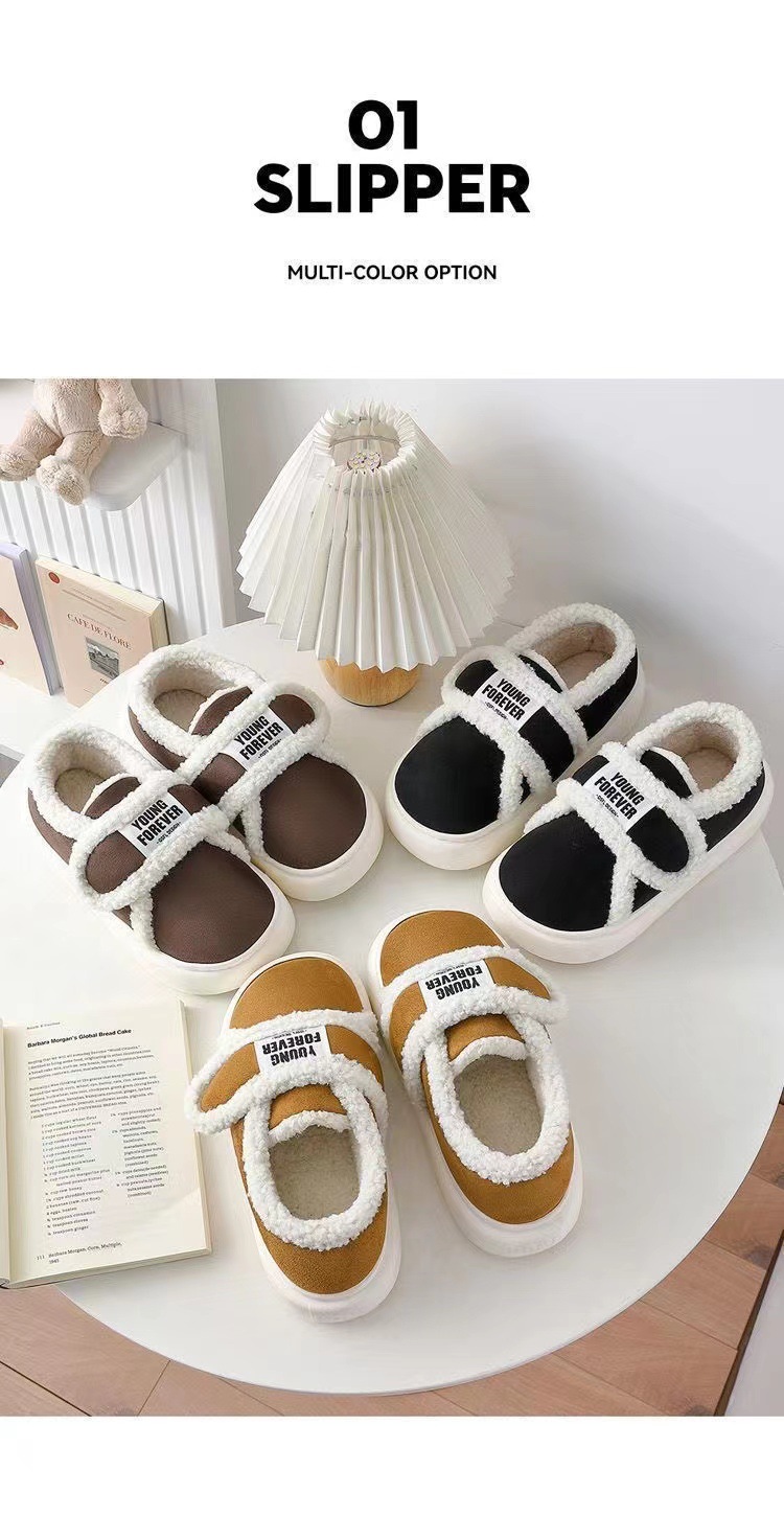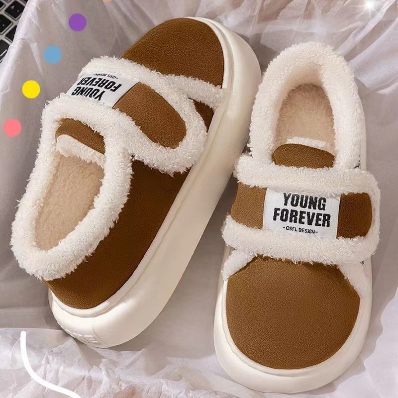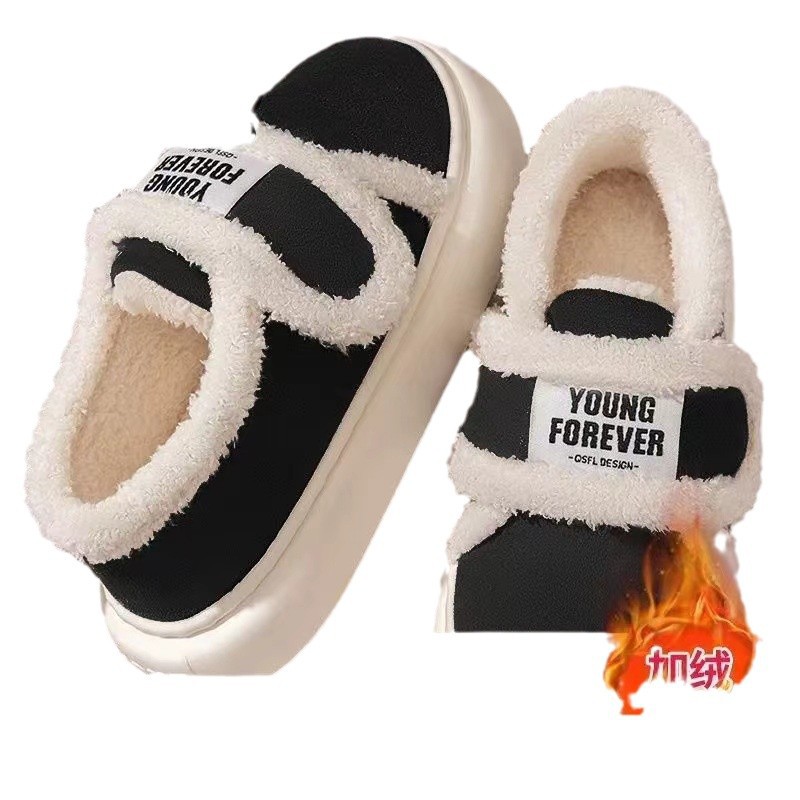 Оптовые тапочки на толстой подошве из хлопка, новый стиль для дома, теплые, утолщенные, нескользящие, подходят для улицы, закрытый носок, хлопковые туфли на липучке, доступен дропшиппинг.