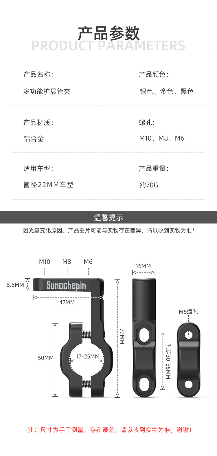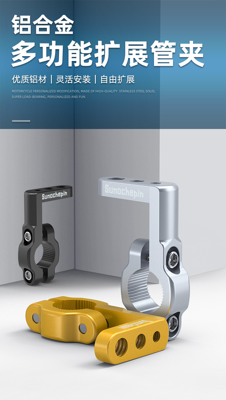 Кронштейн расширения руля с хомутом для труб, черный; Хомут для труб, кронштейн расширения руля, золотой; Хомут для труб, кронштейн расширения руля, серебристый