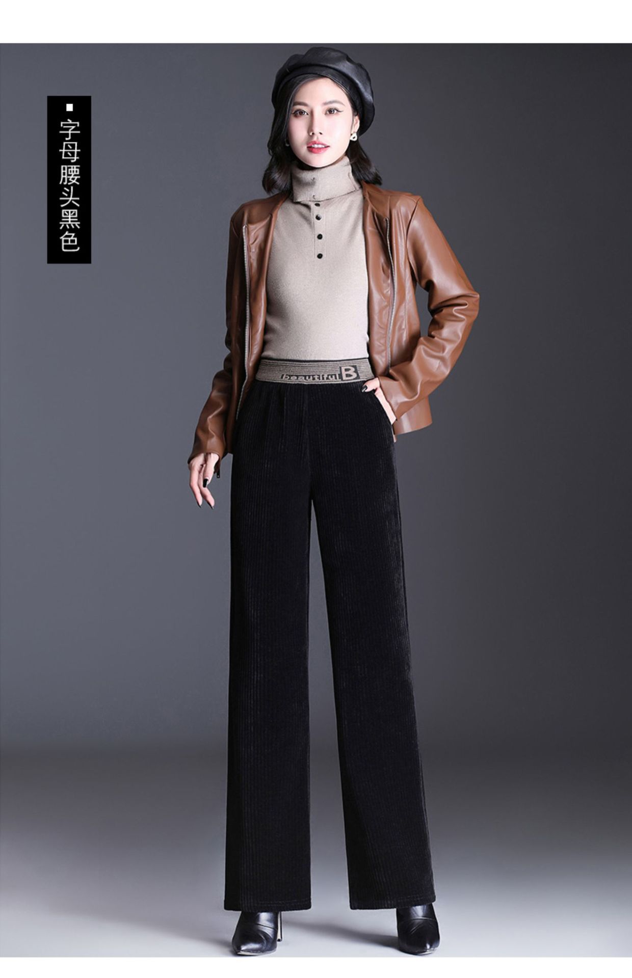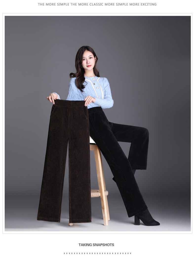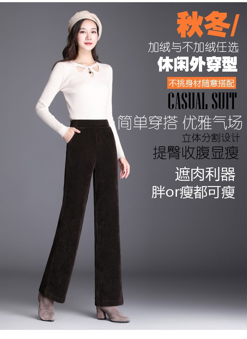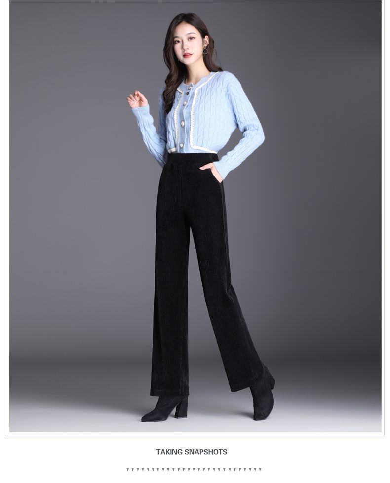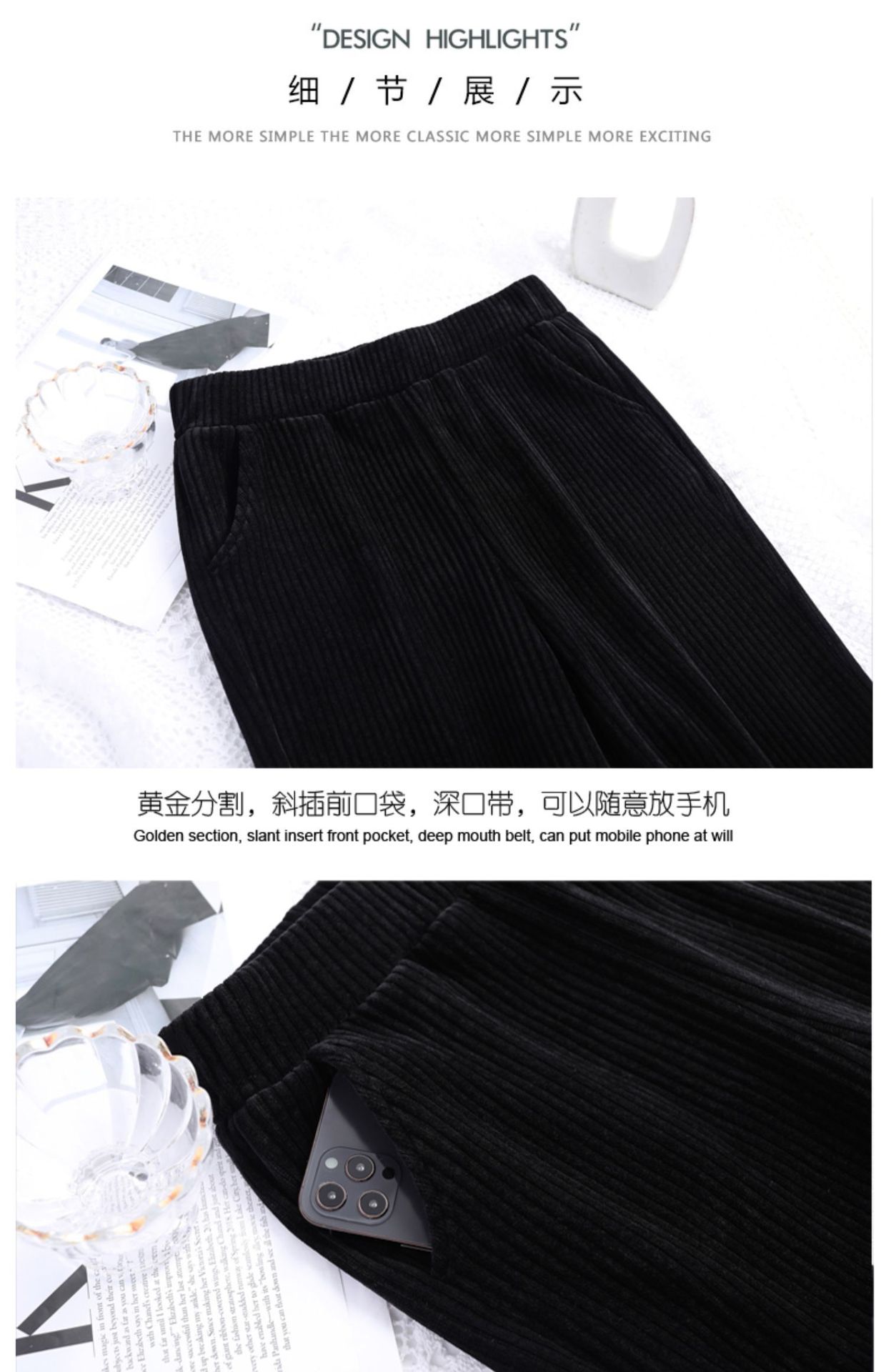 2024 осень и зима новый стиль Женская синье широкие брюки вельветовые брюки повседневные бархатные толстые прямые брюки