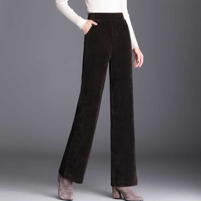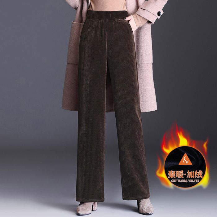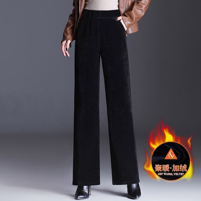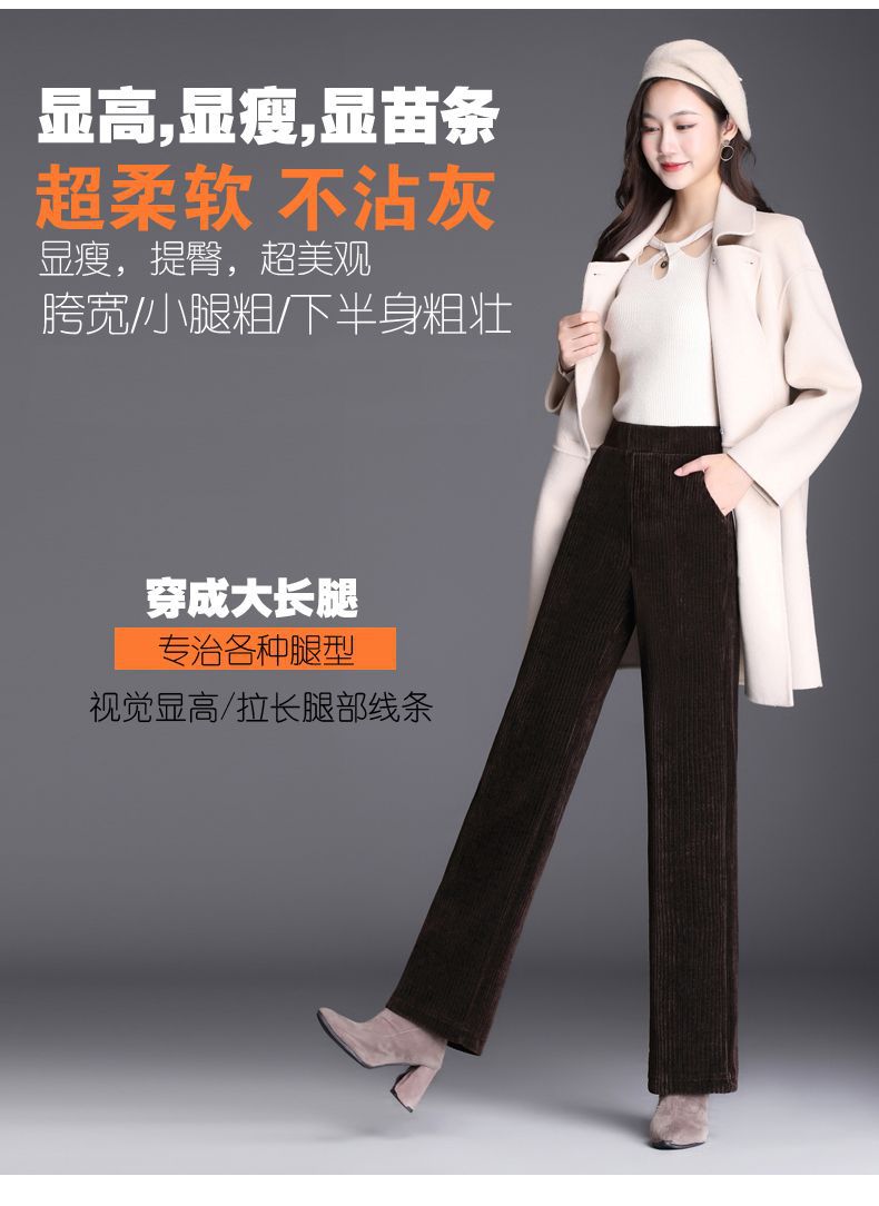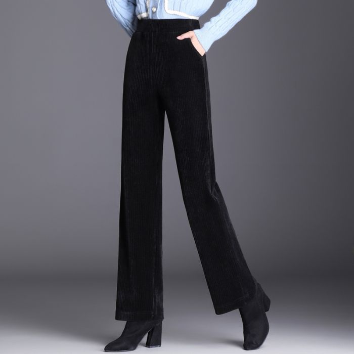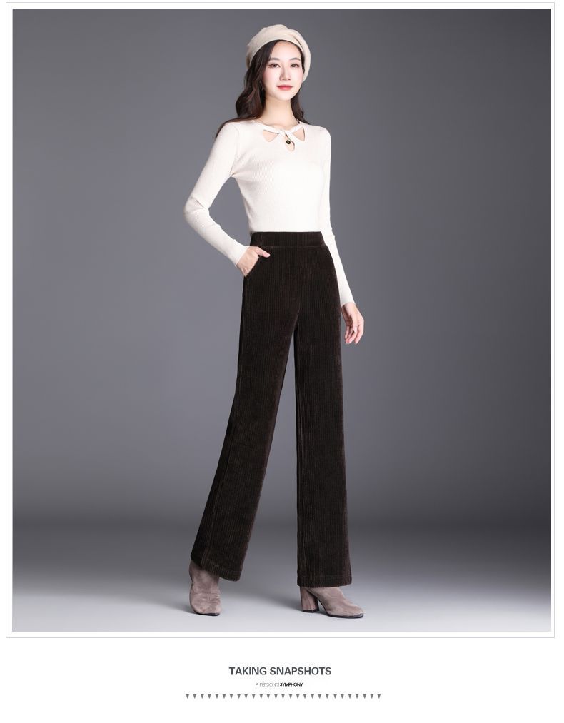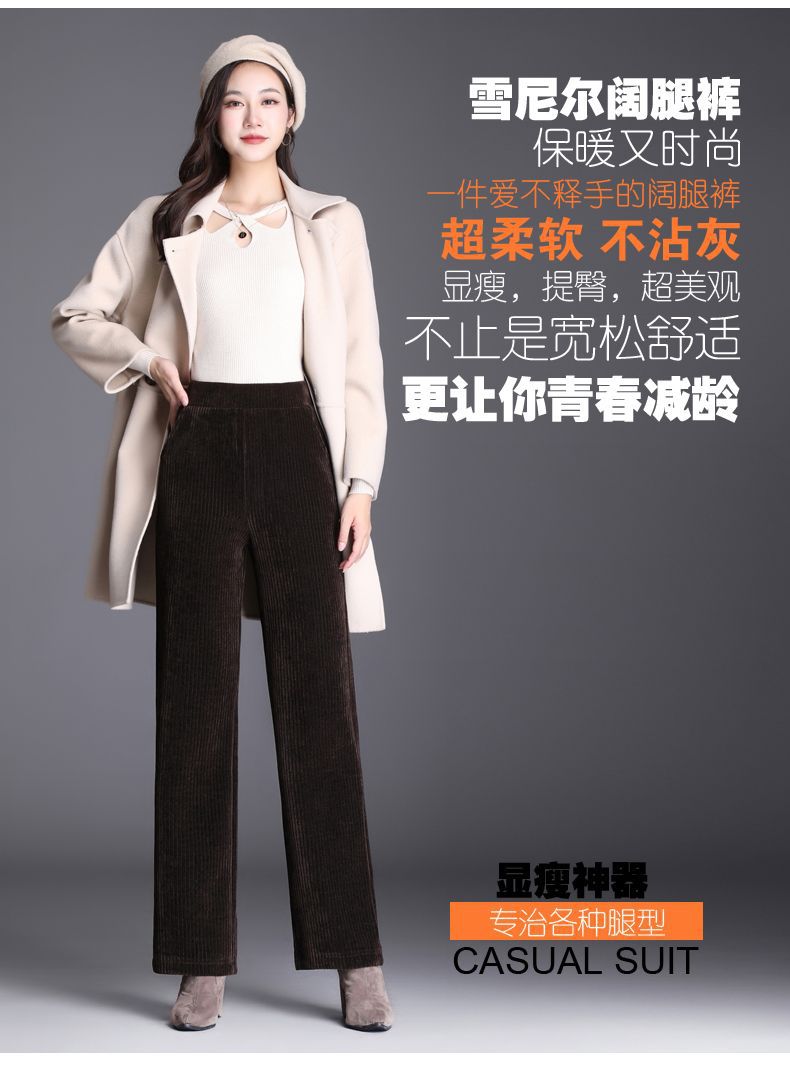 2024 осень и зима новый стиль Женская синье широкие брюки вельветовые брюки повседневные бархатные толстые прямые брюки