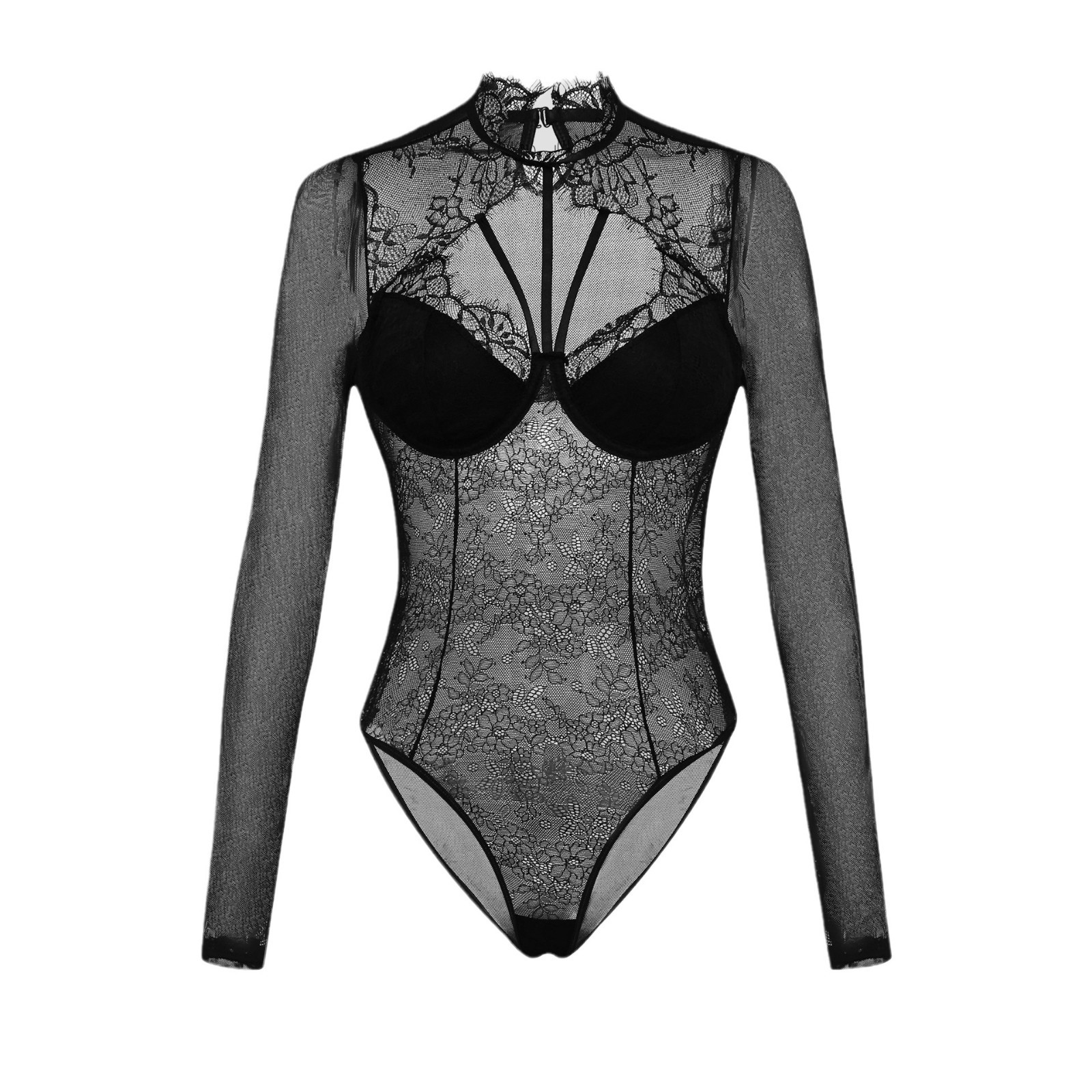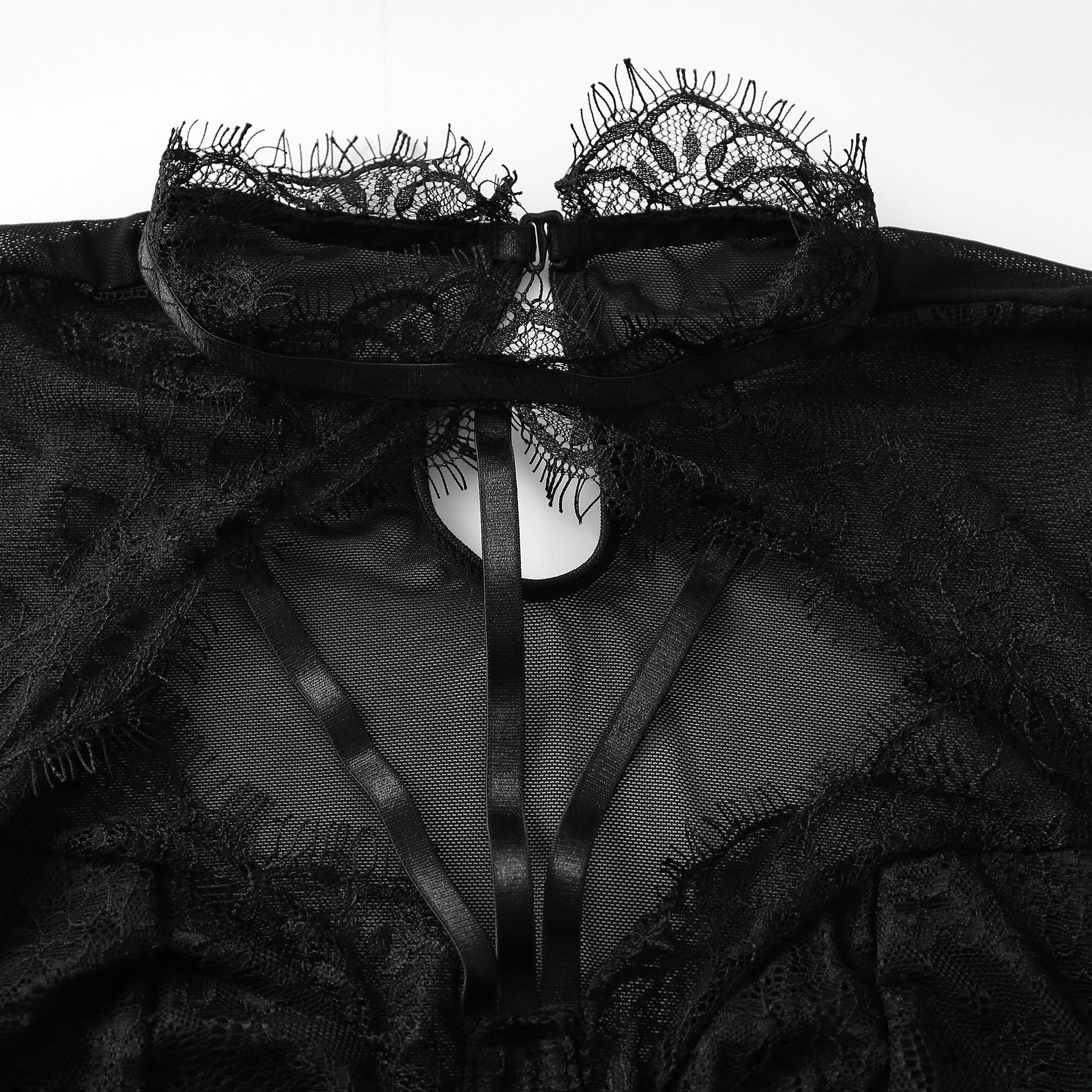 Осенний и зимний черный полый кружевной с длинными рукавами