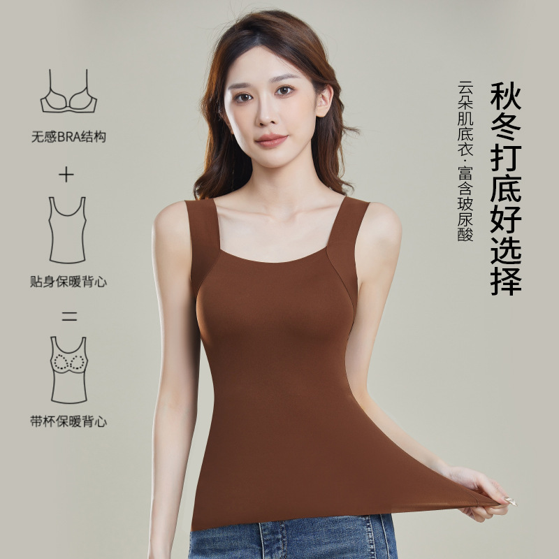 Осень и зима без следов, стройные облака, теплые мышцы, нижняя одежда 7A Антибактериальный ремень, нагрудный коврик, наполовину фиксированная чашка, дно, теплая жилет для женщин