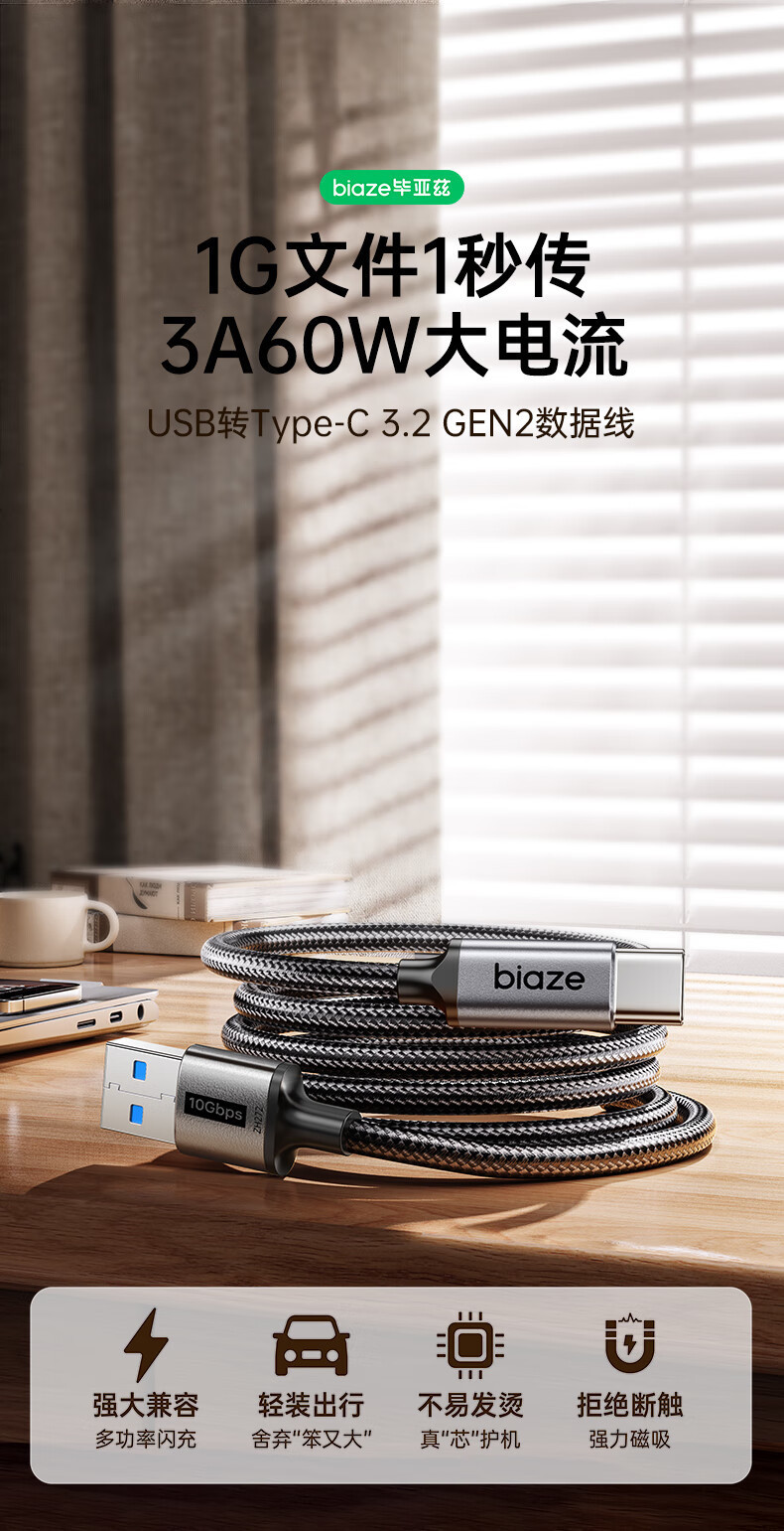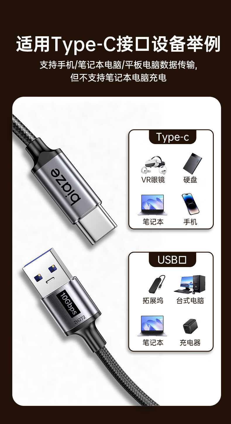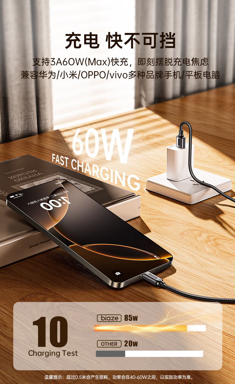 Биаз USB к Type-c передачи данных USB-C Быстрая зарядка кабель Carplay 1 м ZH272