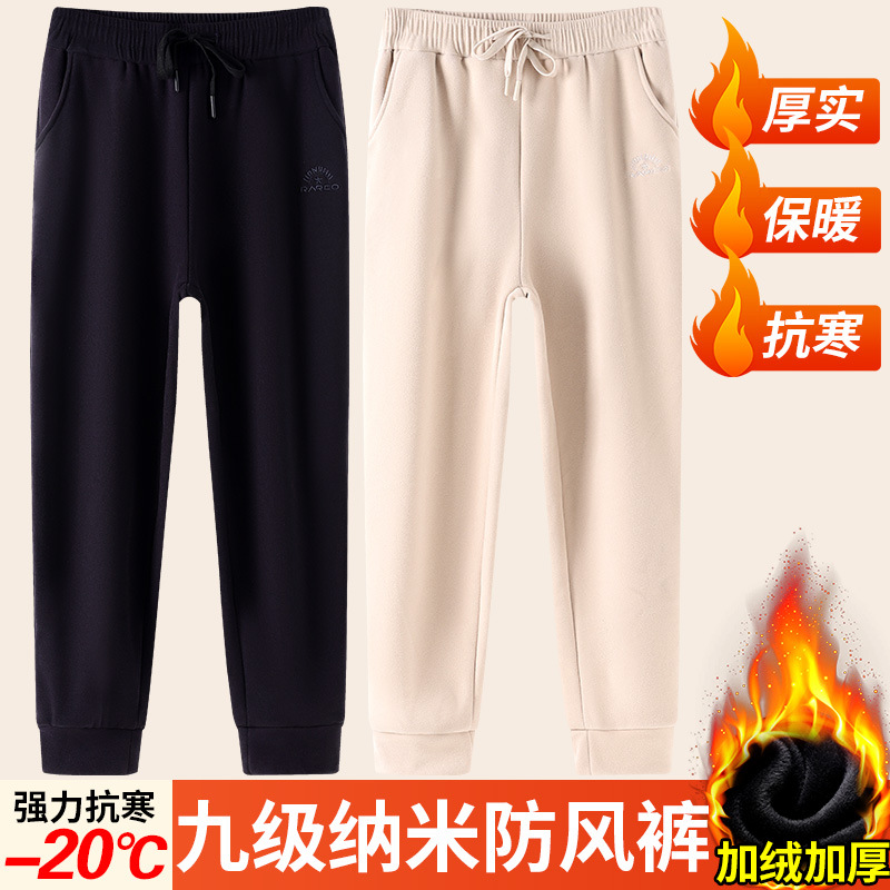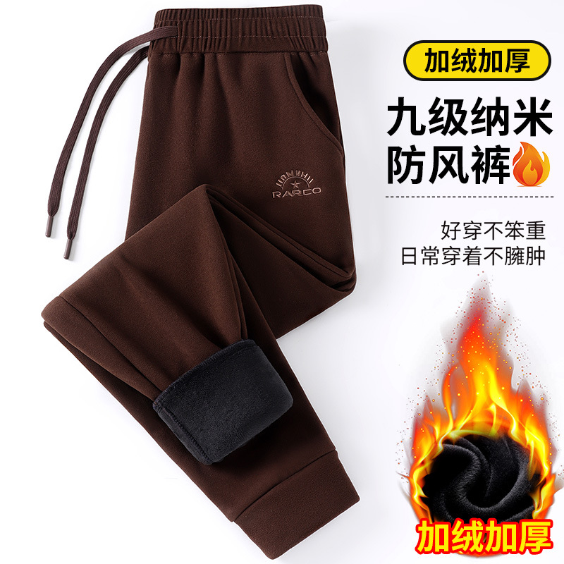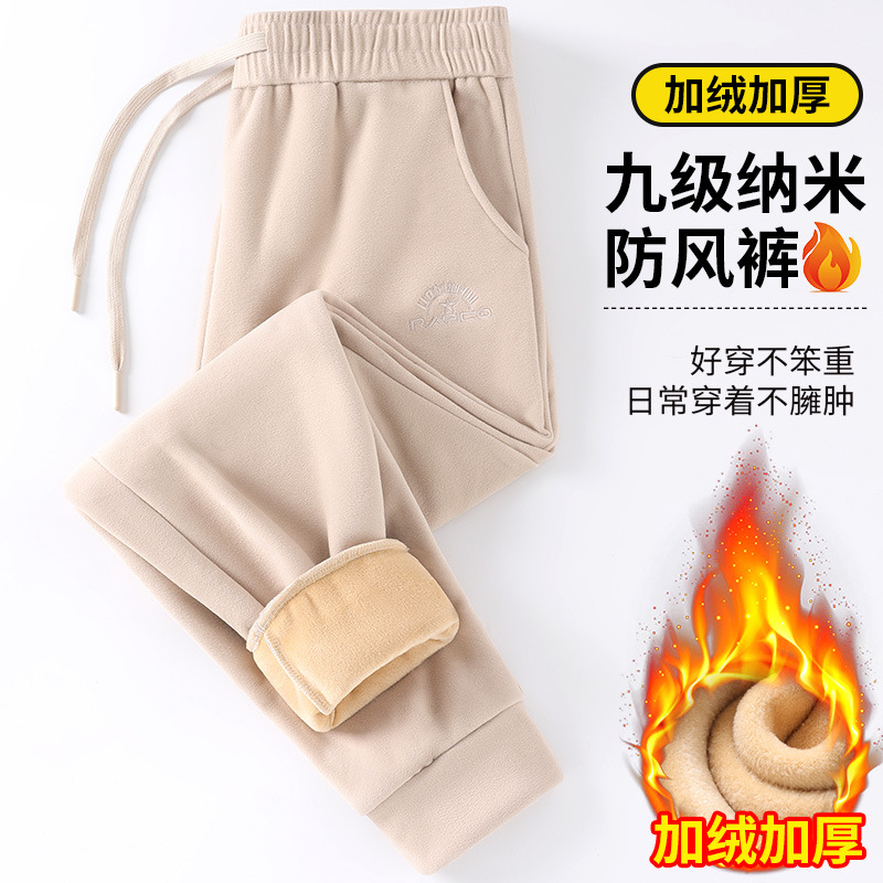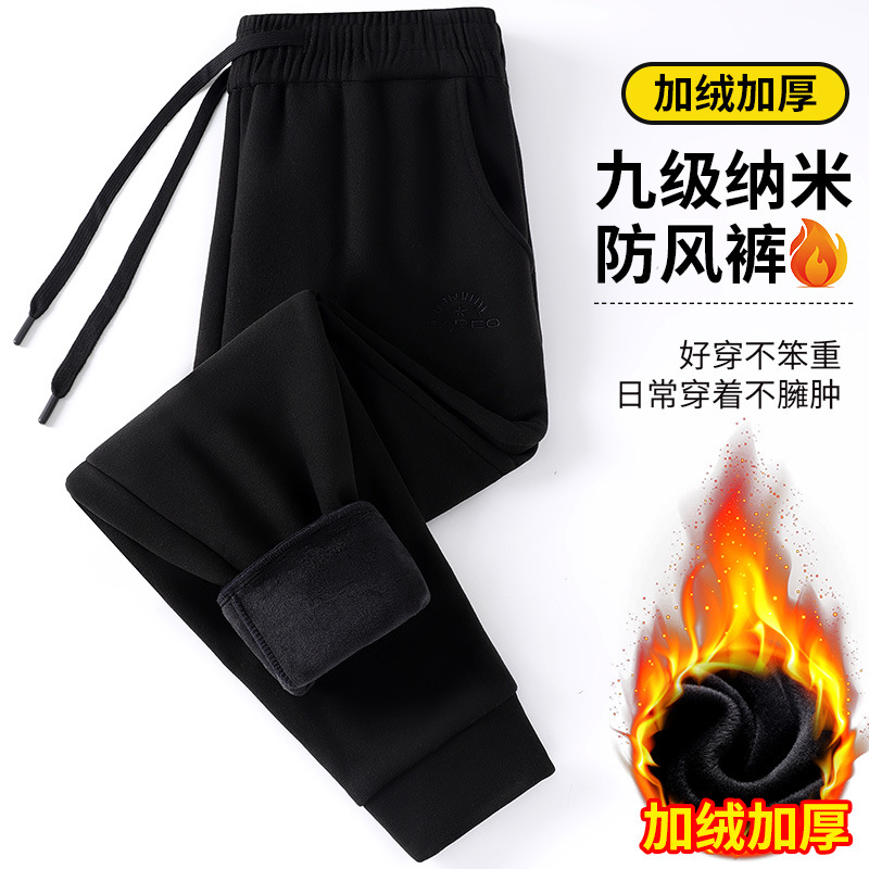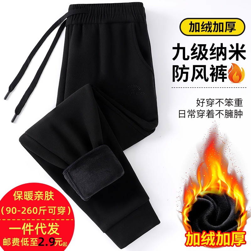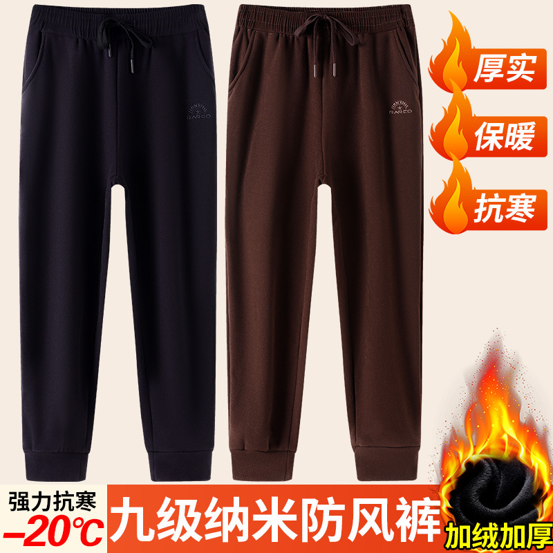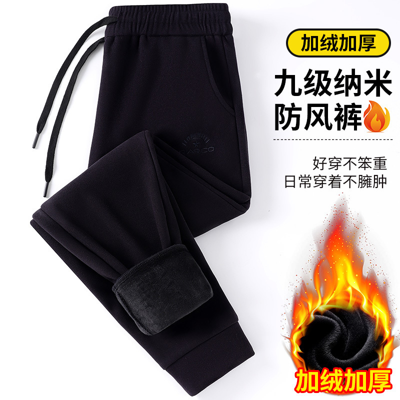 2024 брюки осень и зима девять нано-ветровые штаны свободные сплошные мужские повседневные спортивные штаны пара бархат