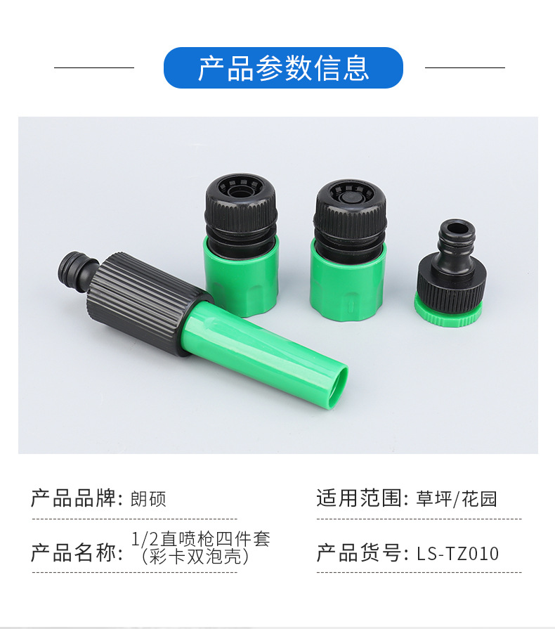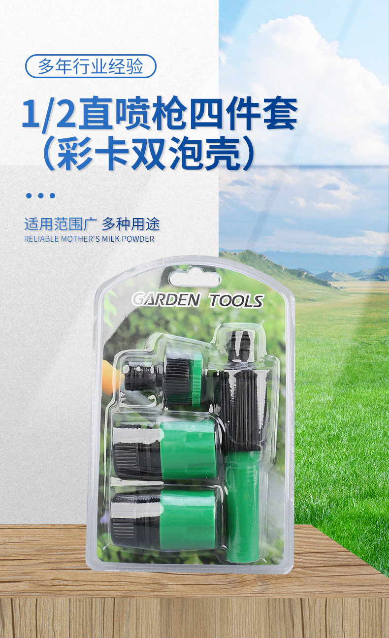 1/2 Прямой распылитель набор из четырех частей (цветная карта с двойной пузырьковой оболочкой) Садовая автомойка высокого давления Садовый водяной пистолет Садоводство