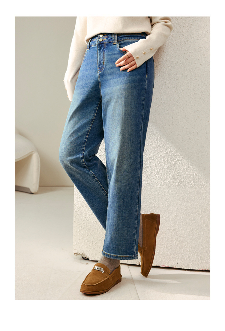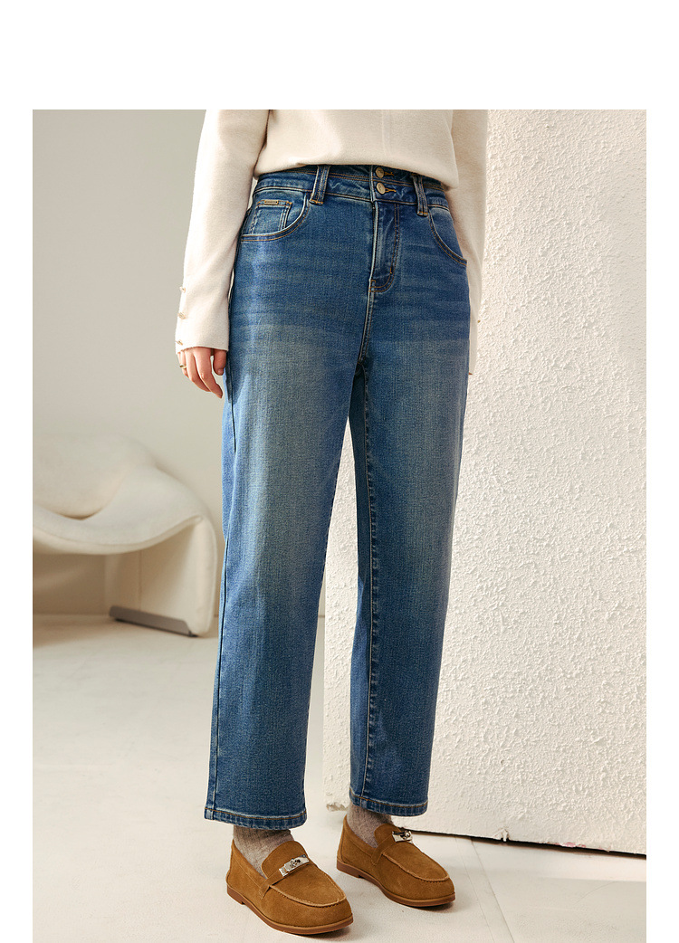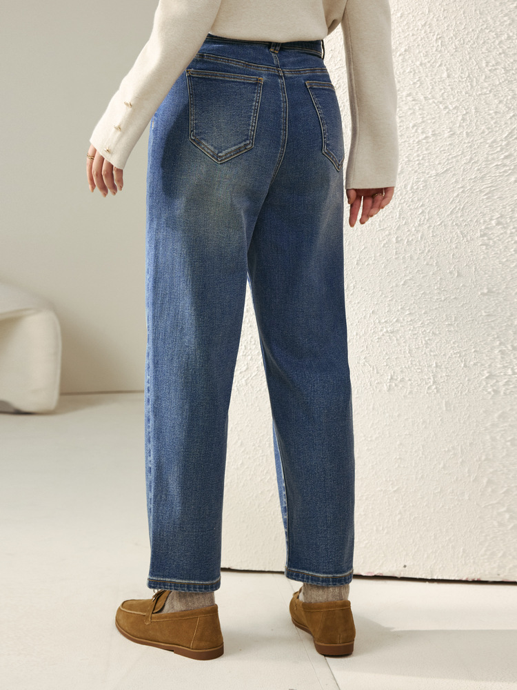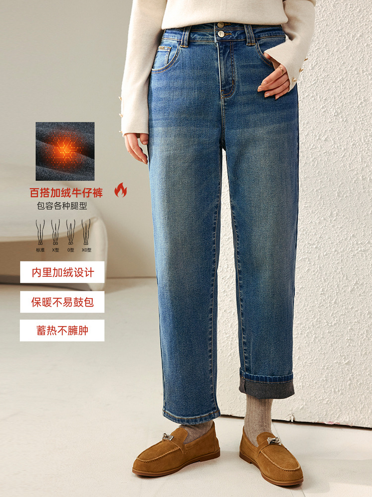 [Две пуговицы папы брюки] Fely Show большой размер женская талия с высокой талией, дикие бархатные джинсы, толстые мм зимняя одежда новый