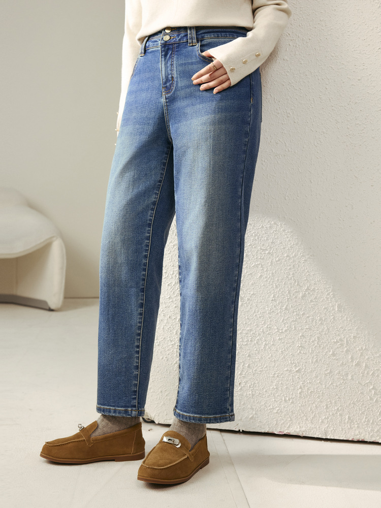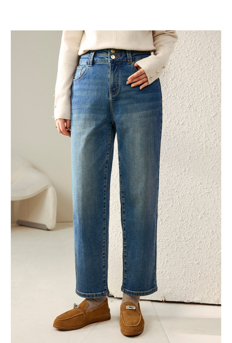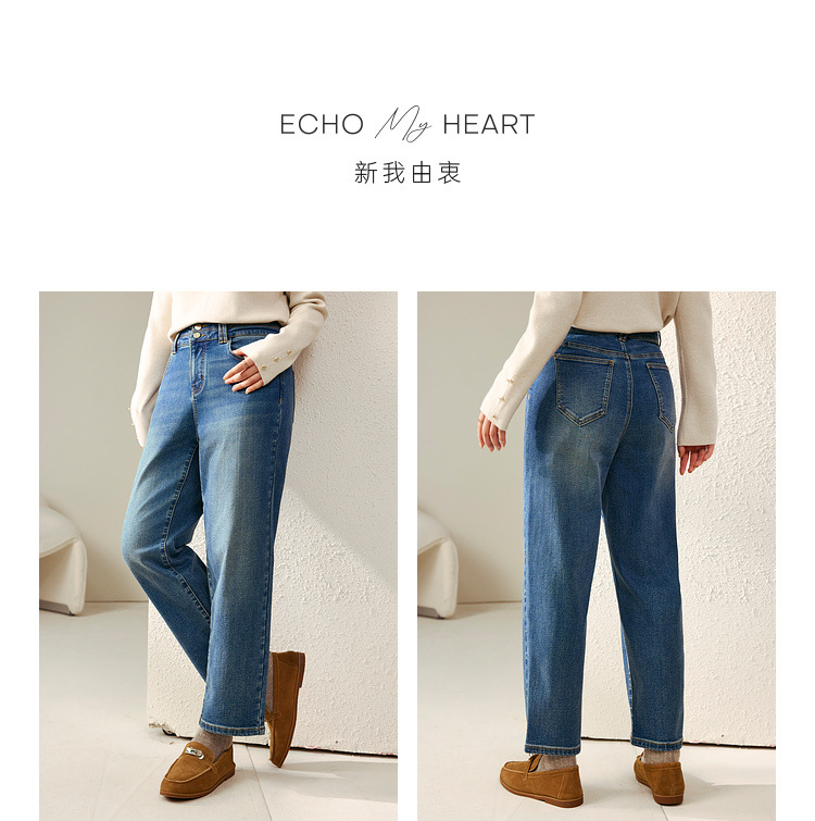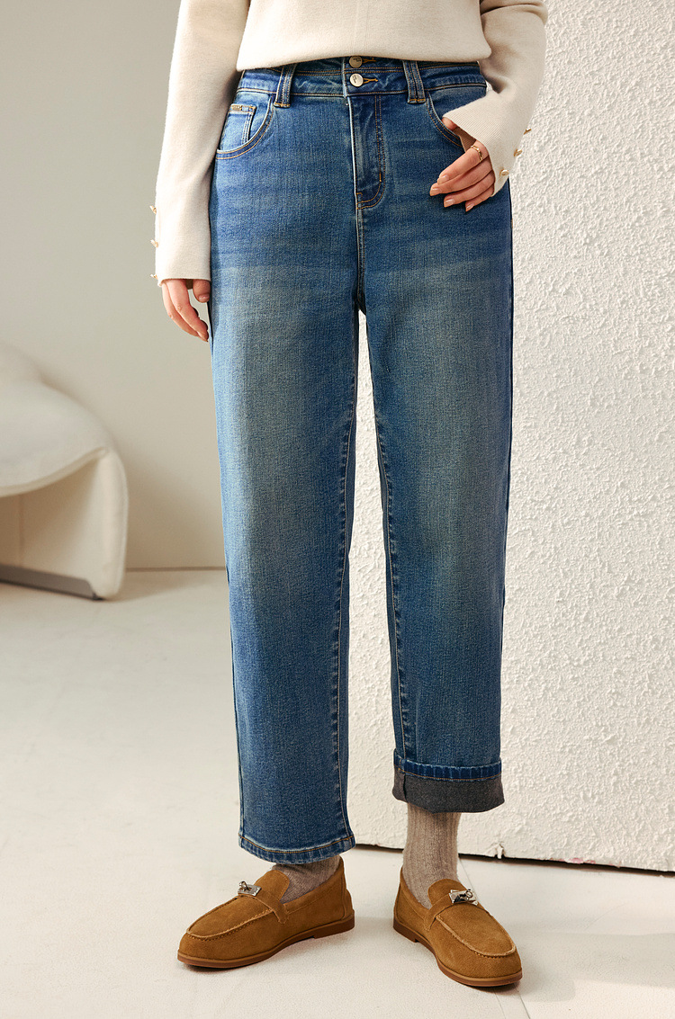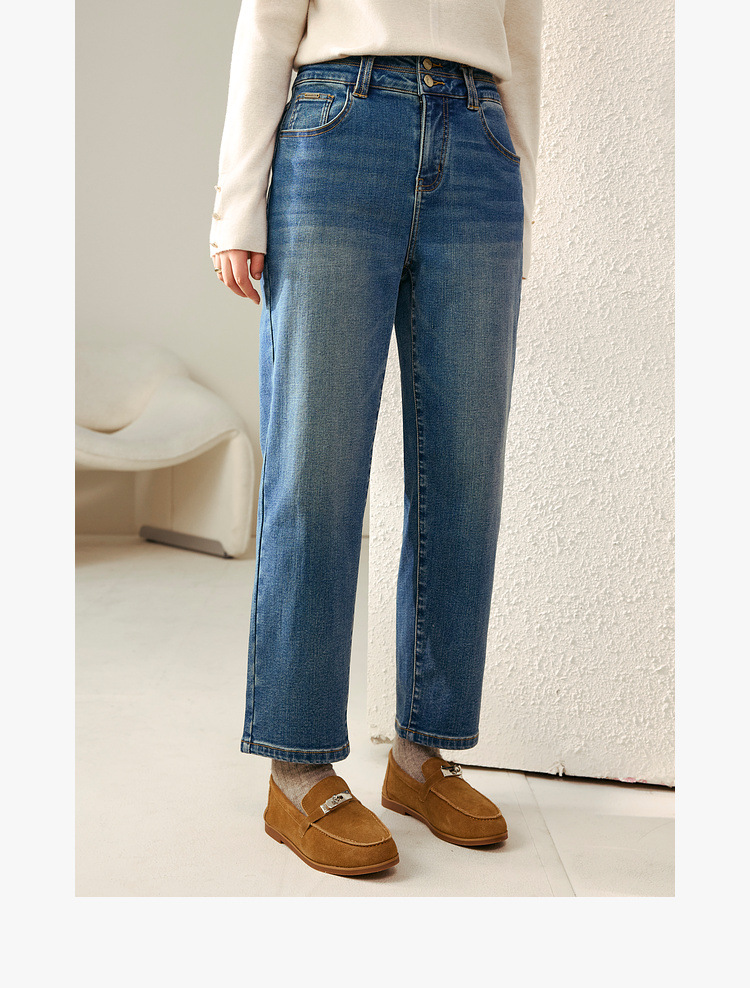 [Две пуговицы папы брюки] Fely Show большой размер женская талия с высокой талией, дикие бархатные джинсы, толстые мм зимняя одежда новый