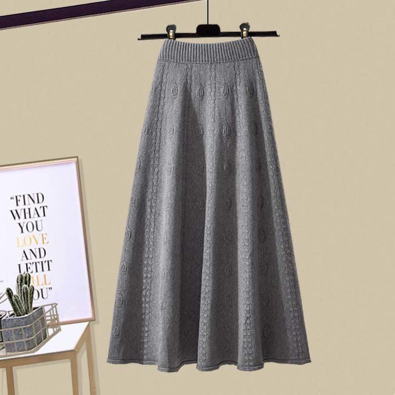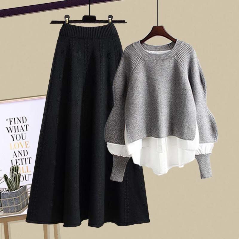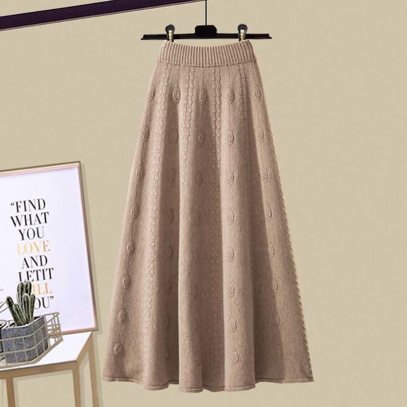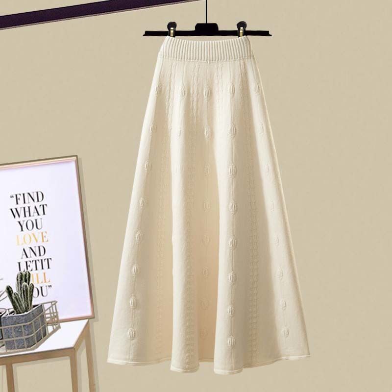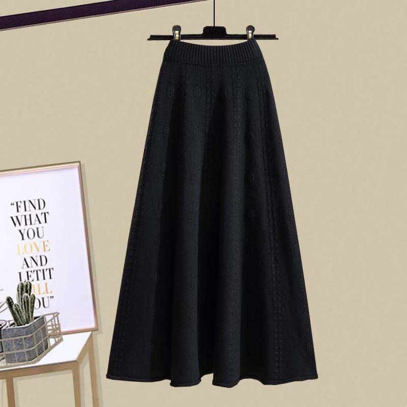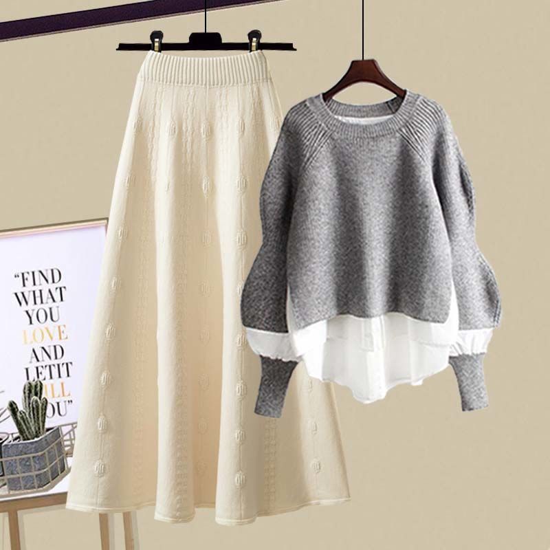 Зимний наряд для женщин больших размеров 2025 года: новый облегающий вязаный комплект из двух предметов (свитер и юбка) для молодежного образа.