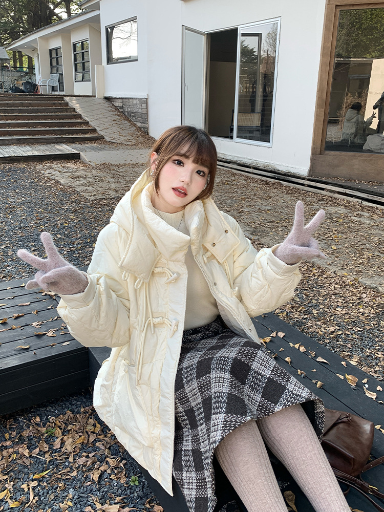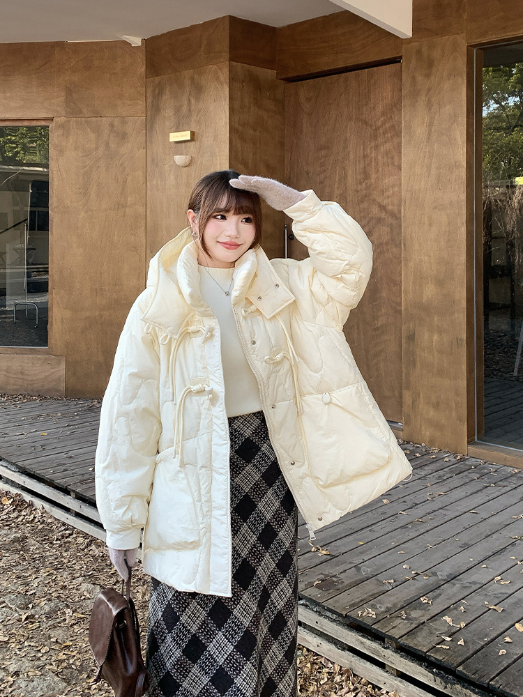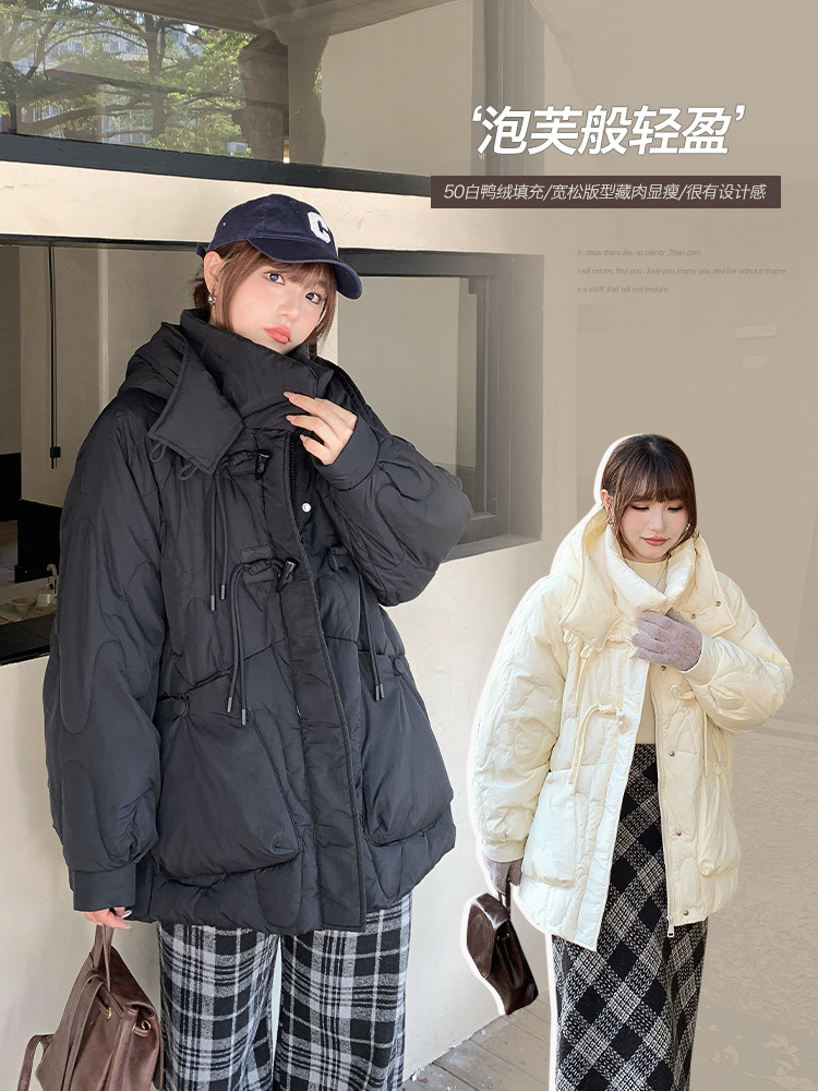 Упряжка рога с капюшоном в китайском стиле теплая пуховик женский толстый мм большой размер женский 50 белая утка пуховая куртка 65148