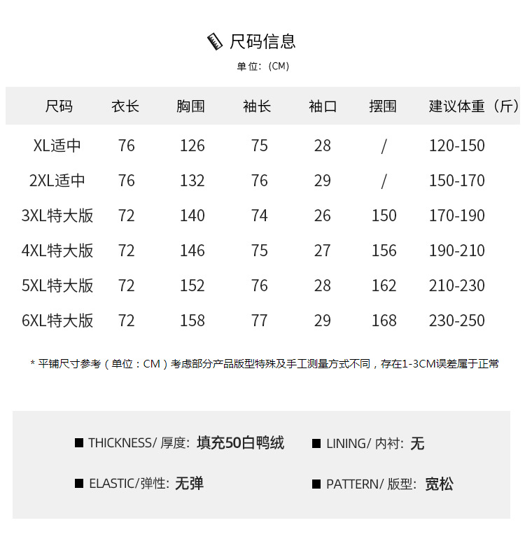 1XL (рекомендуется 60-75kg); 2XL (рекомендуется 75-85kg); 3XL (рекомендуется 85-95kg); 4XL (рекомендуется 95-105kg); 5XL (рекомендуется 105-115kg); 6XL (рекомендуется 115-125kg); L; XL; XXL; XXXL; Увеличить XXXL; Один размер подходит всем; очень большой размер