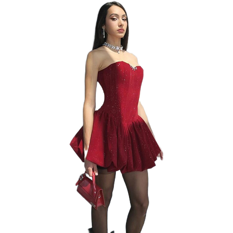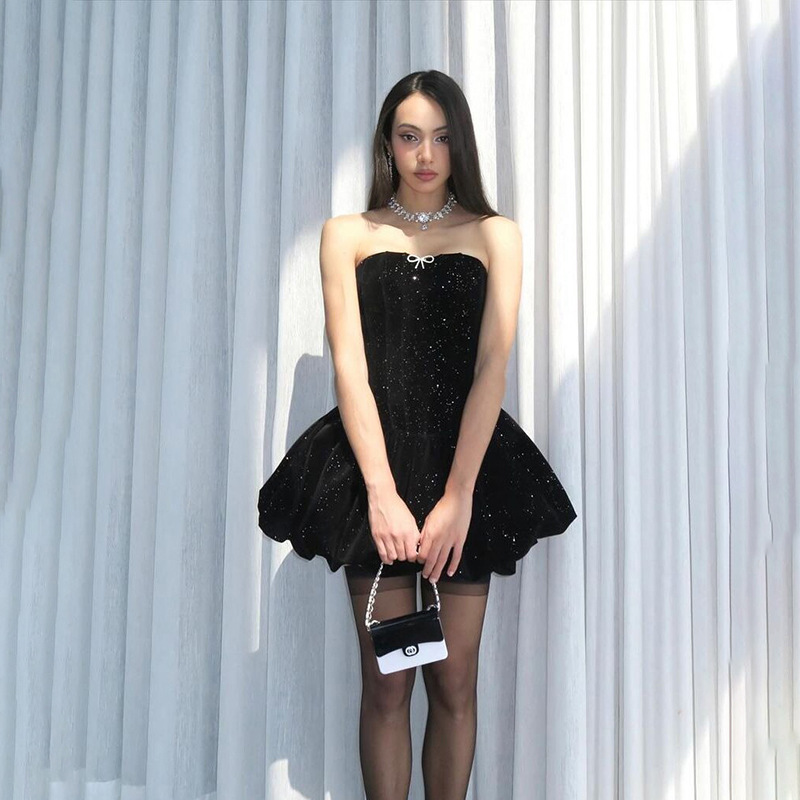 Мода 2024 осень и зима новая женская одежда французская сексуальная юбка с вырезом темперамент платье с открытой спиной