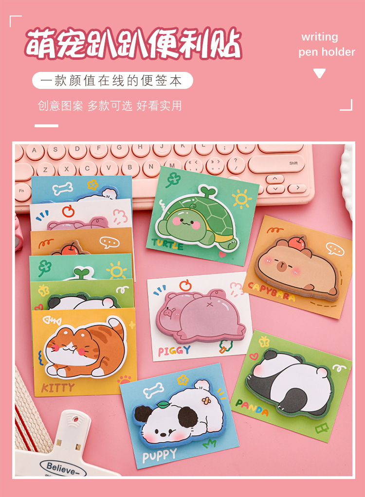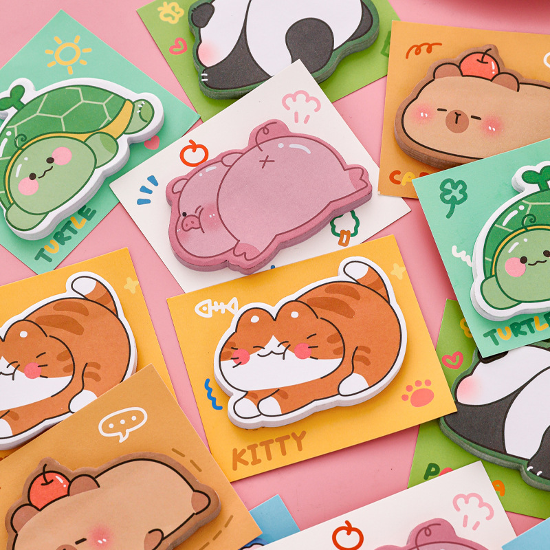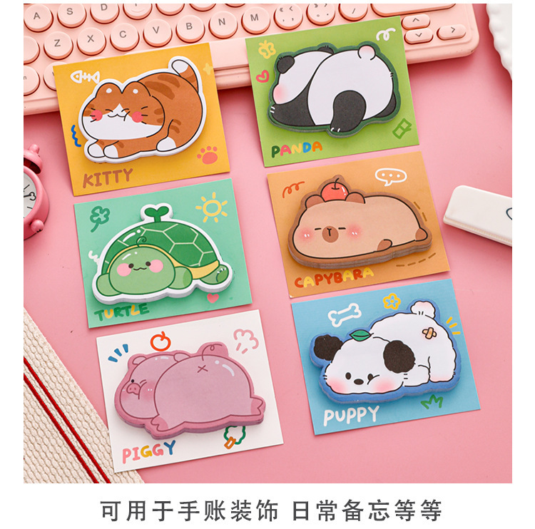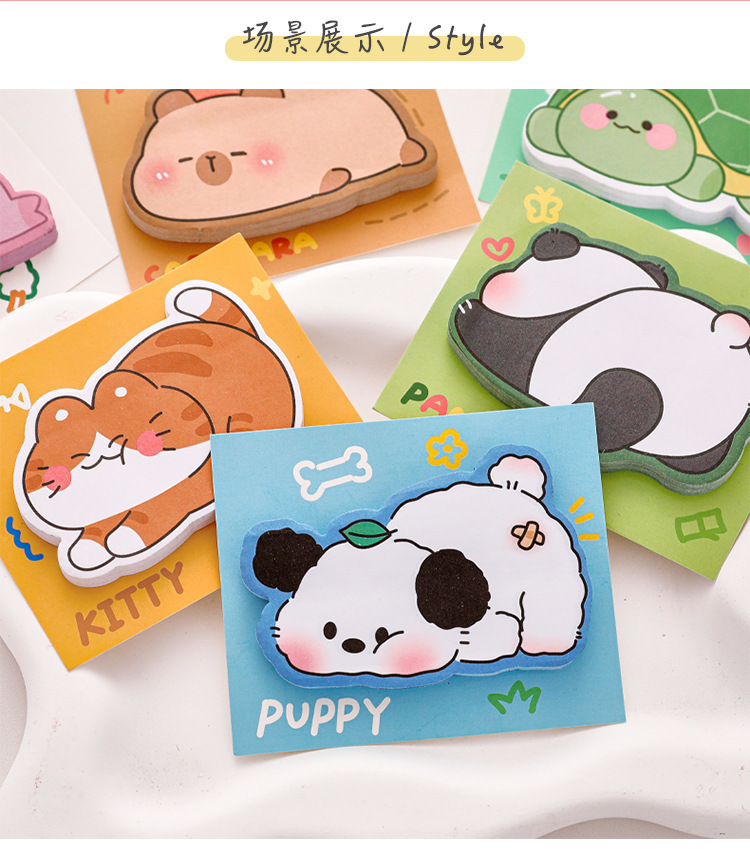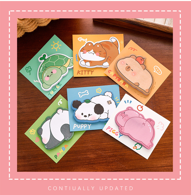 Капибара-После-это Примечания; Кат-после-ито заметки; Заметки «Собака-после-йо»; Мышь-После-и примечание; Заметки Panda-Post-it; Примечание «Кролик-После-и».; Енот-после-это Примечания; Овец-после-это заметки