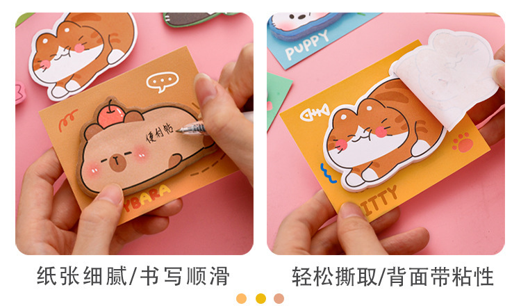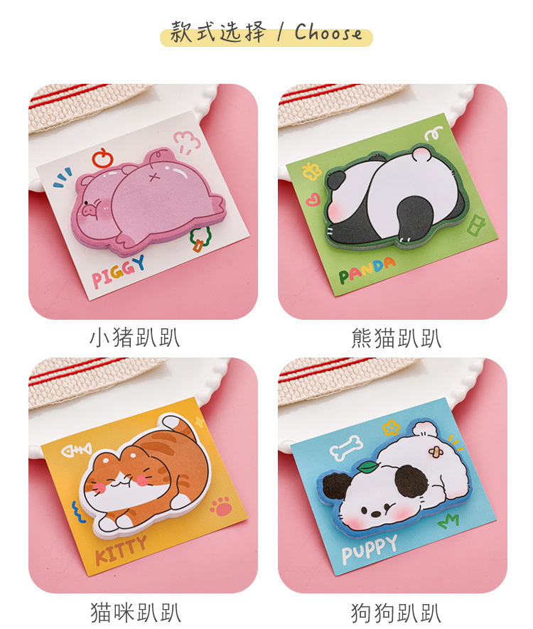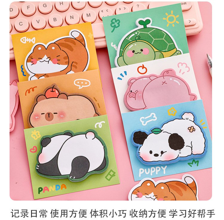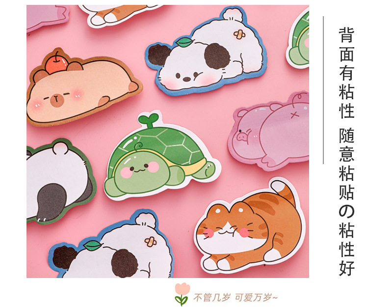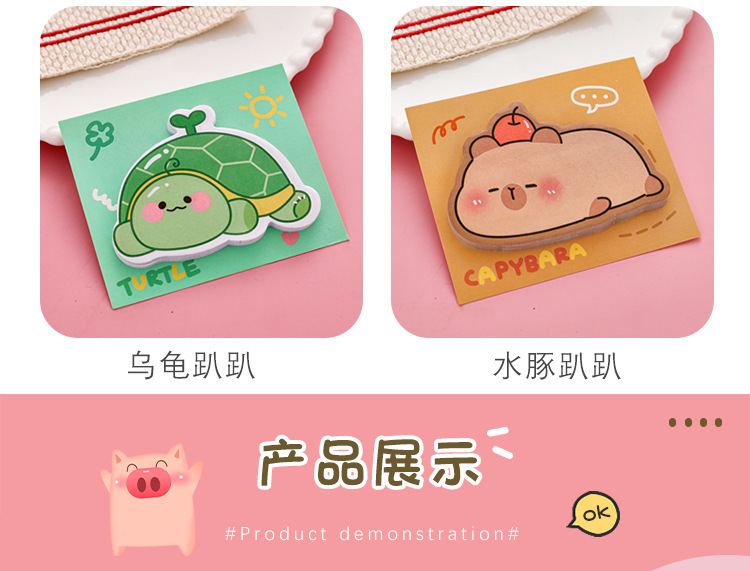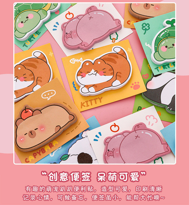 Капибара-После-это Примечания; Кат-после-ито заметки; Заметки «Собака-после-йо»; Мышь-После-и примечание; Заметки Panda-Post-it; Примечание «Кролик-После-и».; Енот-после-это Примечания; Овец-после-это заметки
