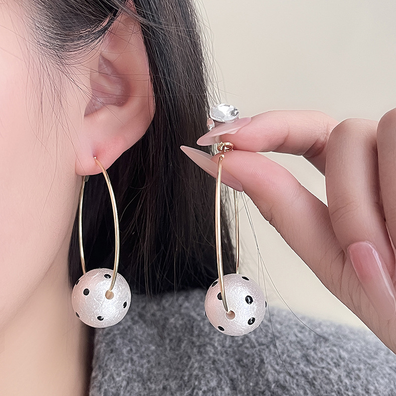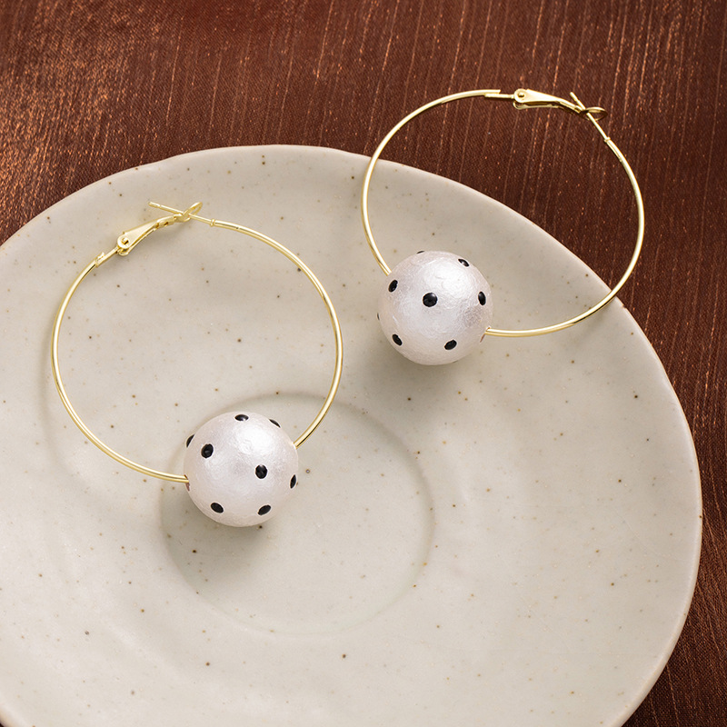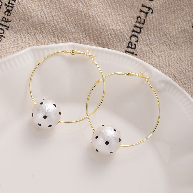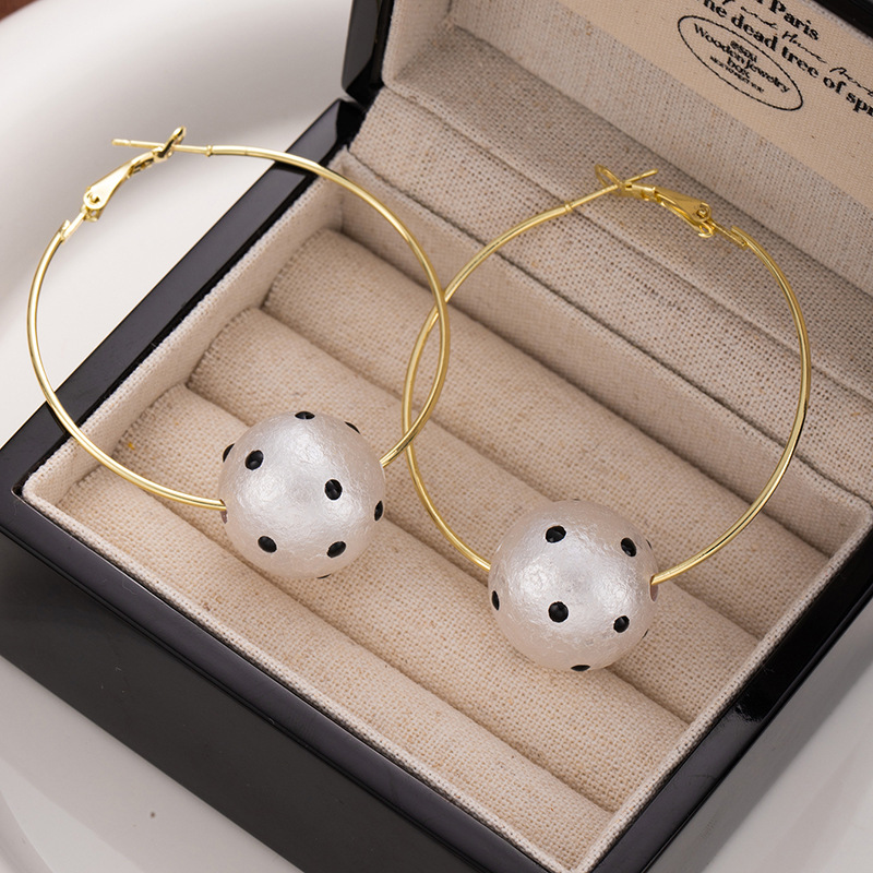 黑白波点珍珠大耳圈高级感耳饰925银针耳环女时尚饰品批发货源