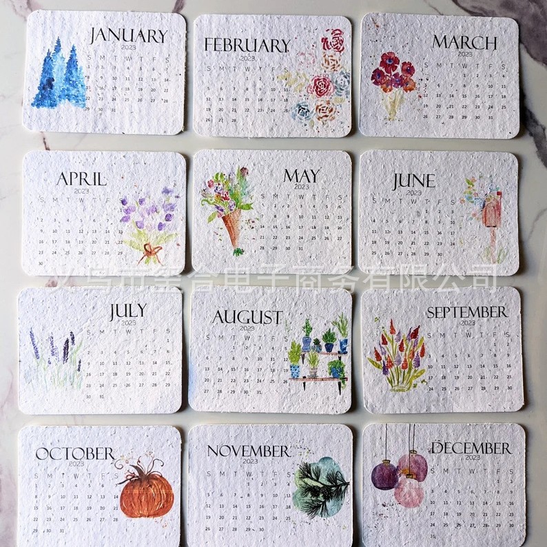 Биоразлагаемый календарь из семенного картона, календарь-сажалка 2026, белый календарь из семенного картона с цветами