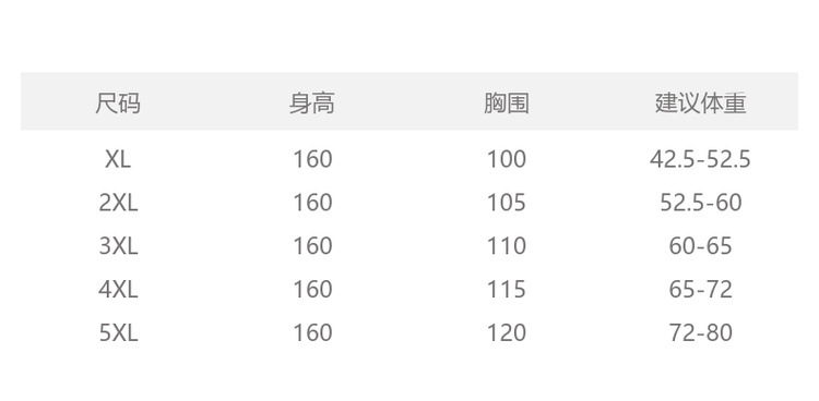 XL (рекомендуется 45-52.5kg); 2XL (рекомендуется 52.5-60kg); 3XL (рекомендуется 60-67.5kg); 4XL (рекомендуется 67.5-75kg); 5XL (рекомендуется 75-82.5kg)