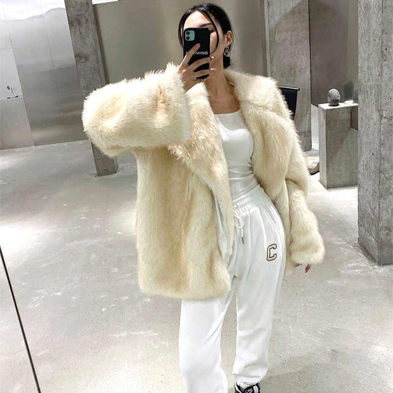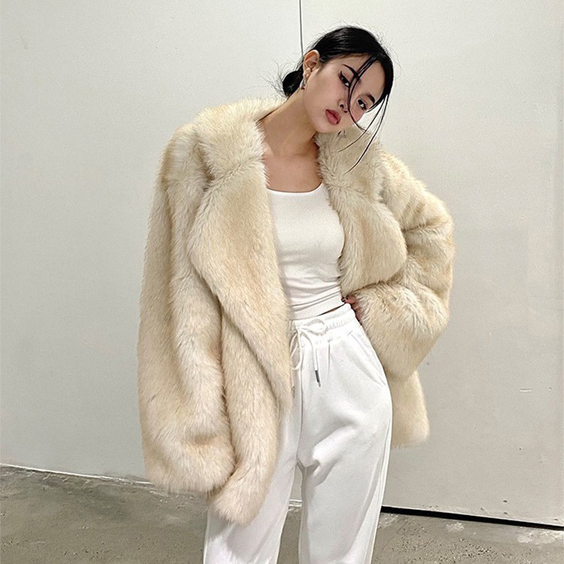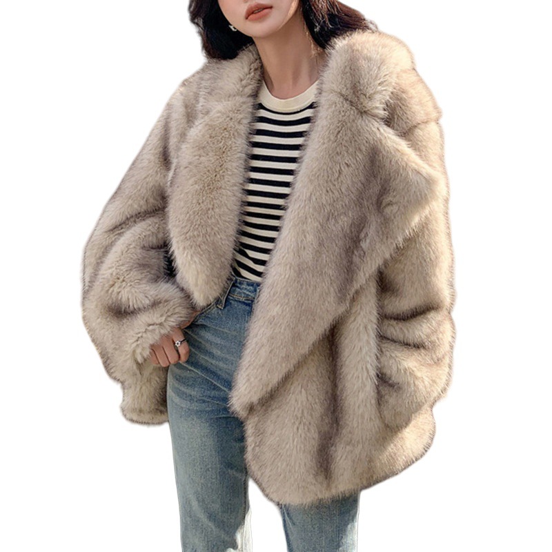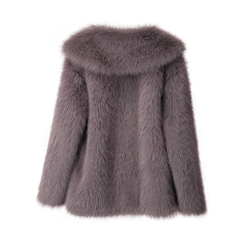 Европейская и американская трансграничная зимняя верхняя одежда из меха 2025 для женщин, свободная верхняя одежда средней длины с воротником из искусственного меха лисы, верхняя одежда из искусственного меха