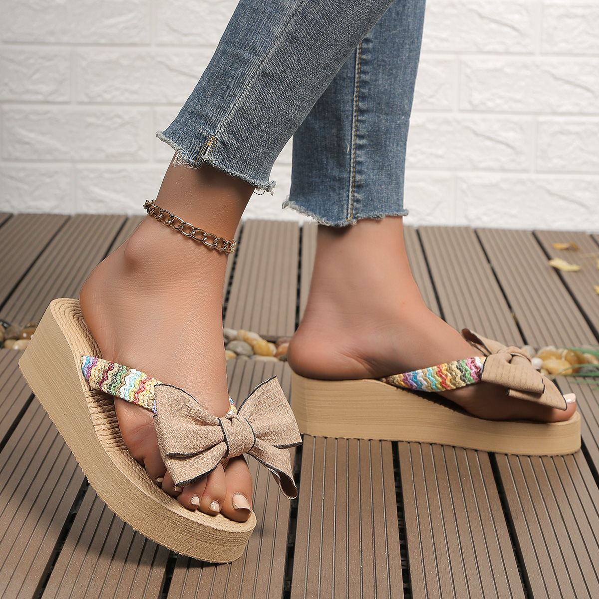 Европейские и американские банты носят противоскользящие средние каблуки на высоком каблуке пляжные холодные тапочки